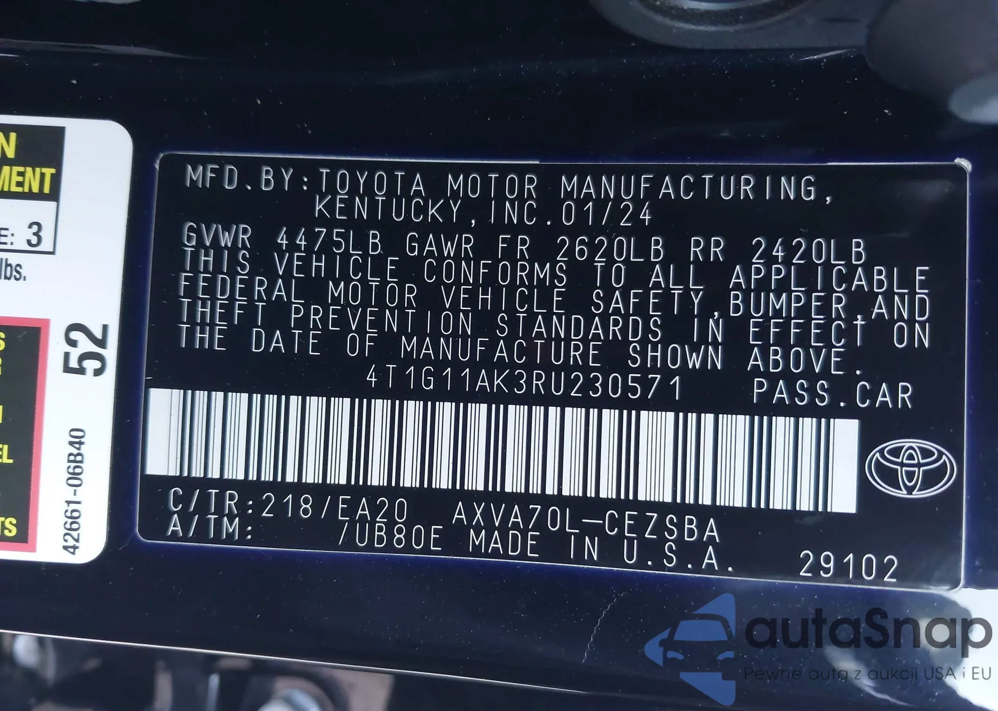 • VIN 4T1G11AK3RU230571