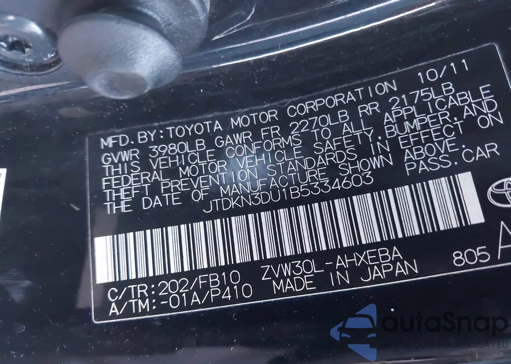 LOT: 43929661 VIN: JTDKN3DU0A1253193