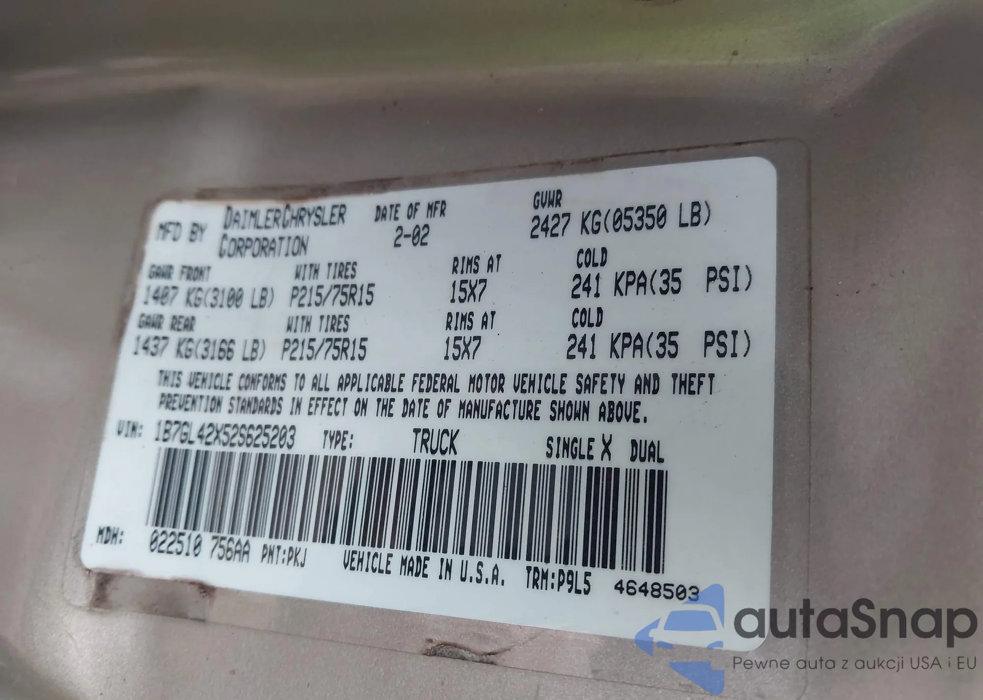 LOT: 42114201 VIN: WDBUF70J23A115262