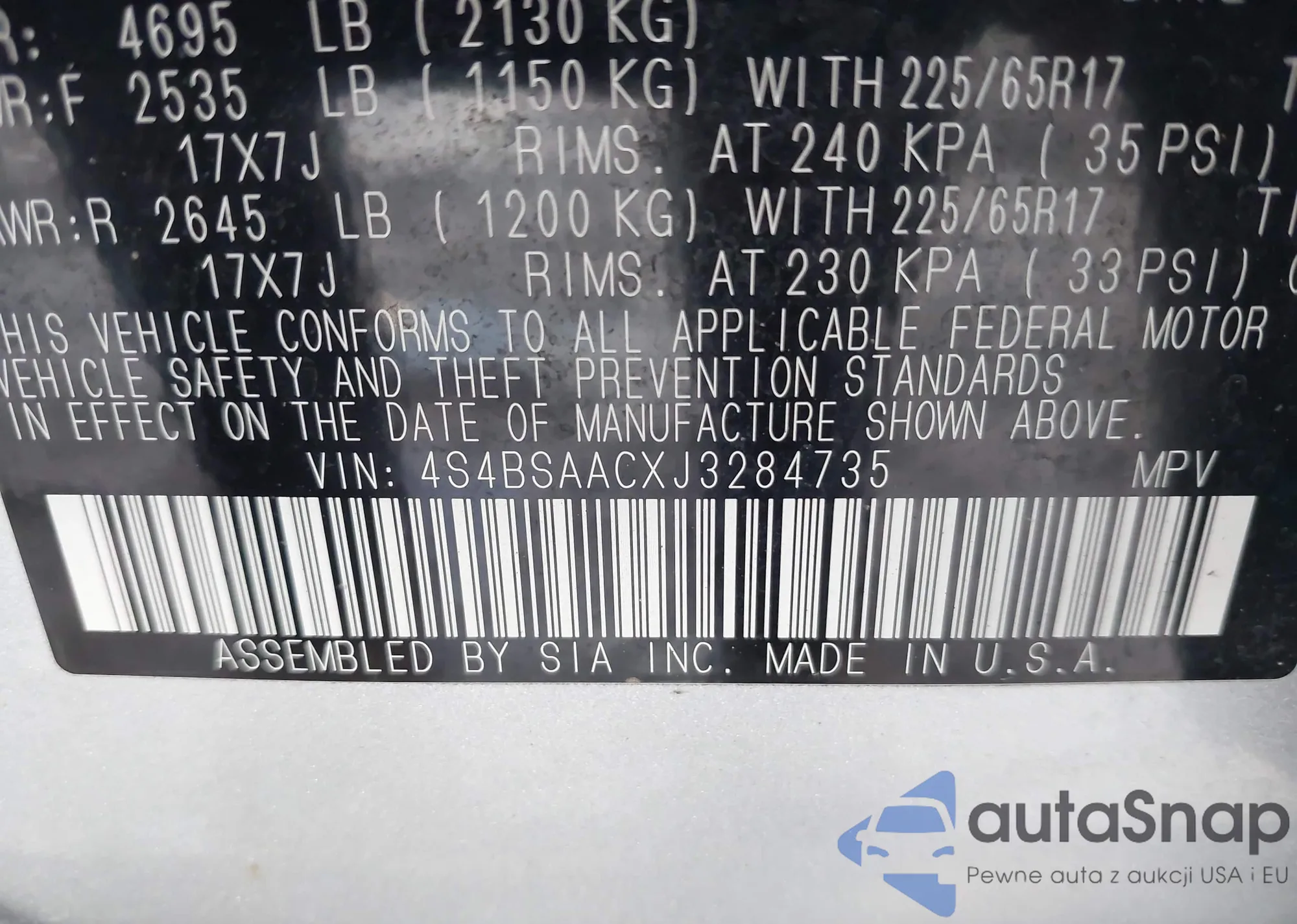 • VIN 4S4BSAACXJ3284735