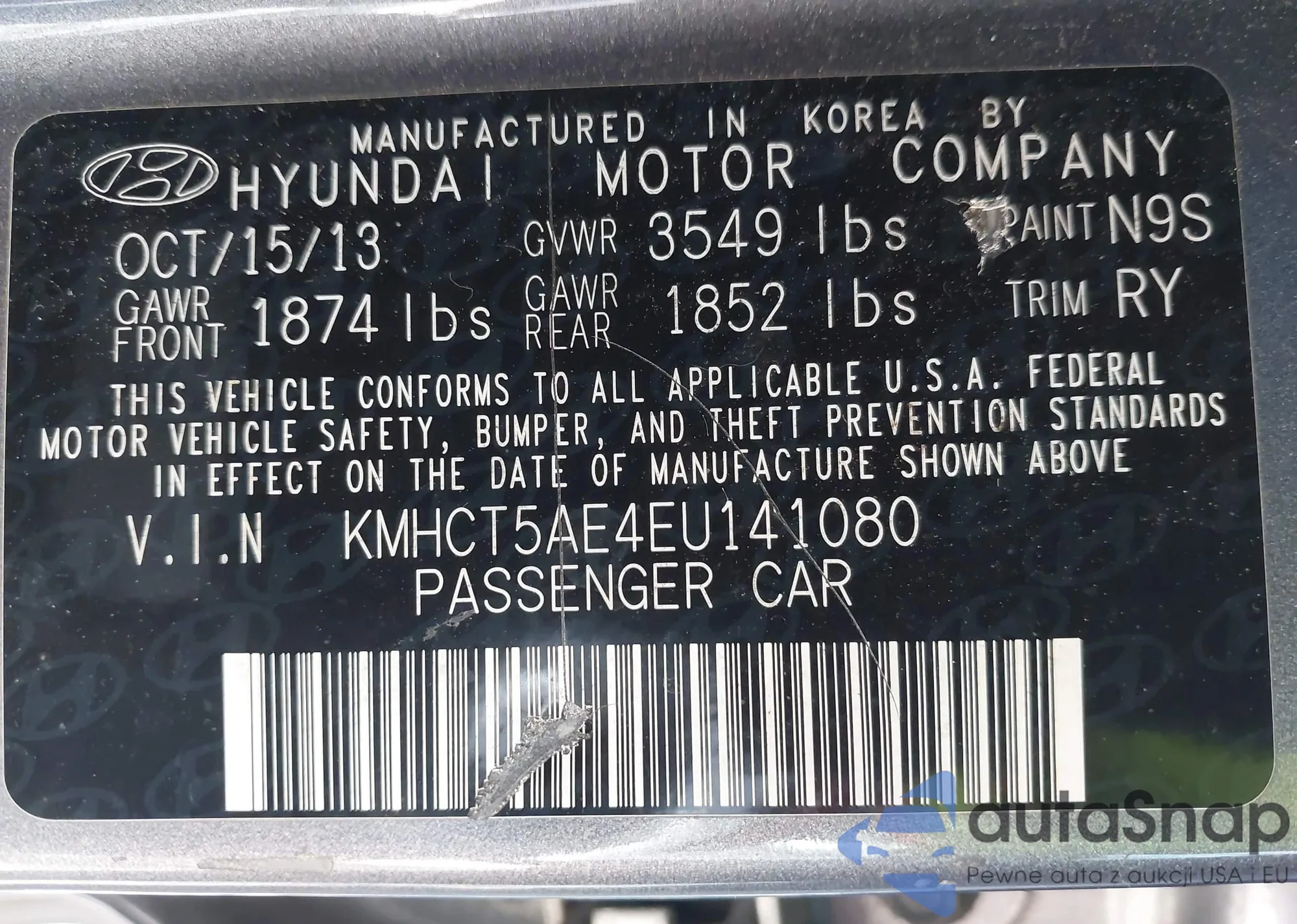• VIN 5XYZU3LA8DG041350