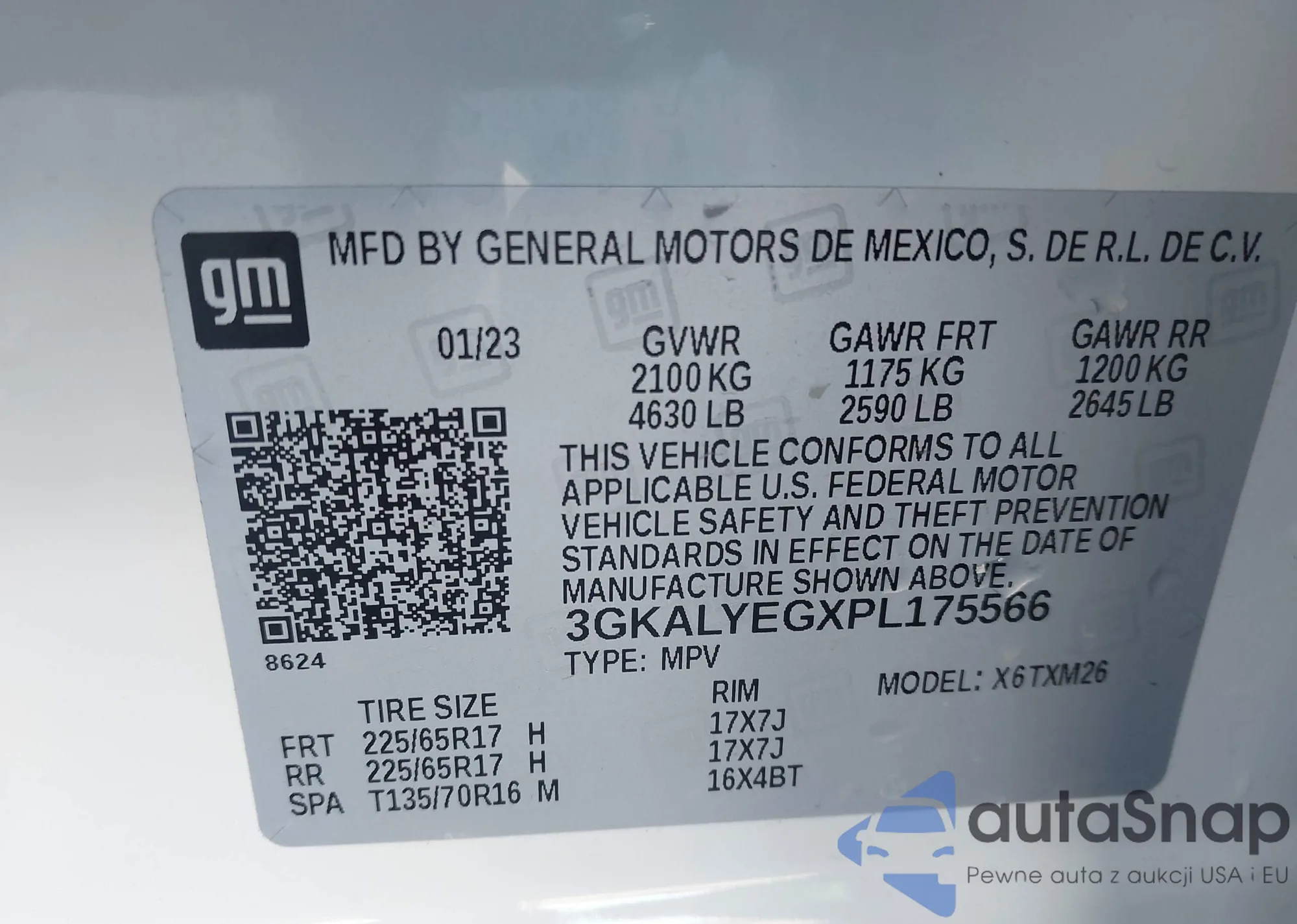 LOT: 43640266 VIN: 3GKALYEGXPL175566
