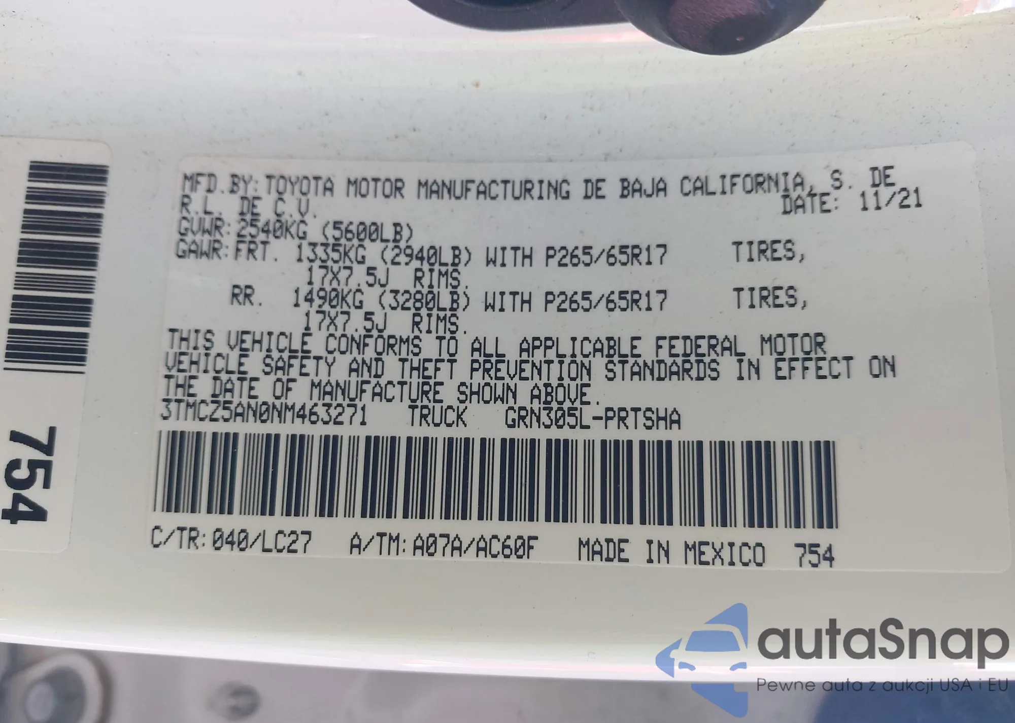 • Lot number 43807977
