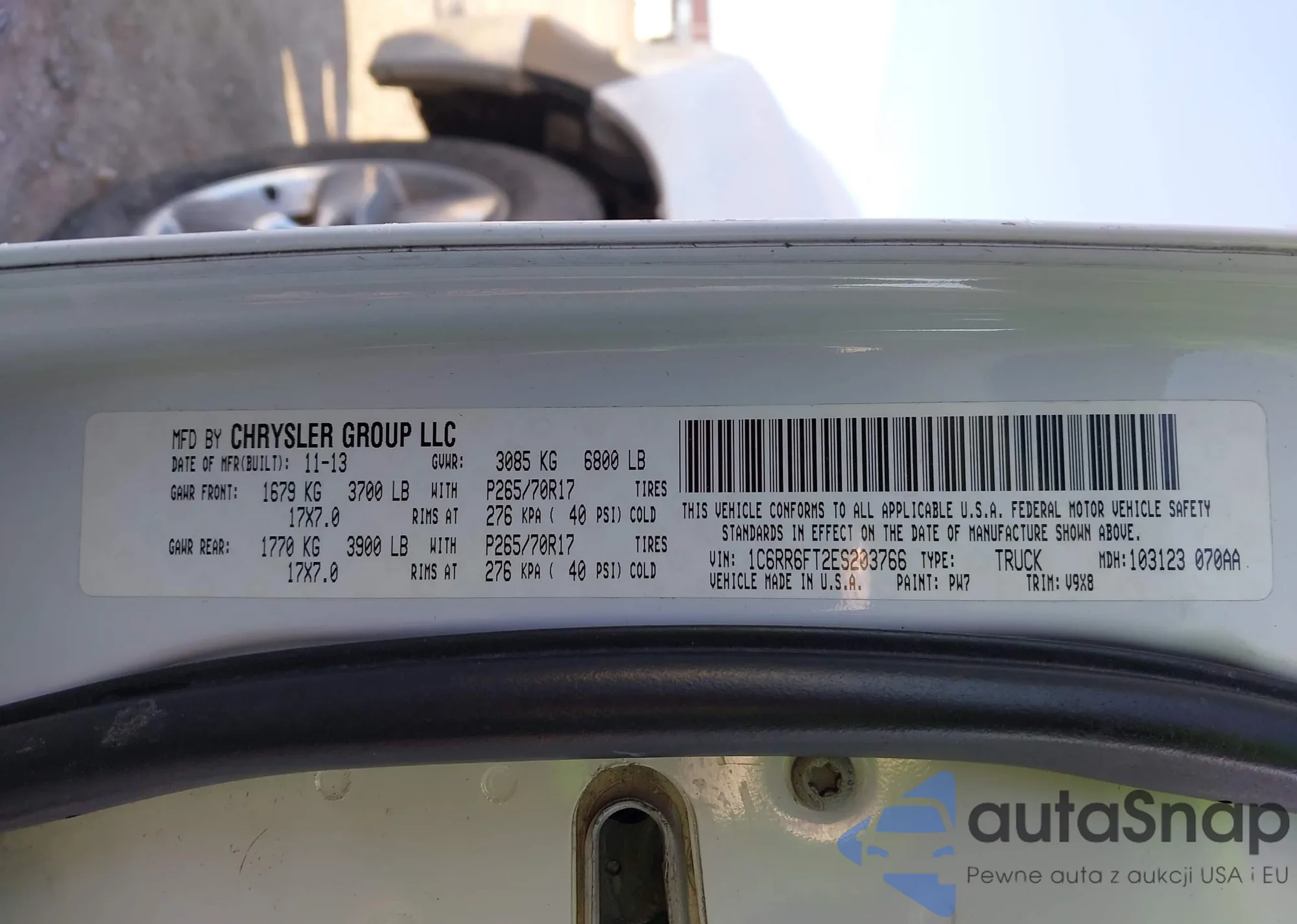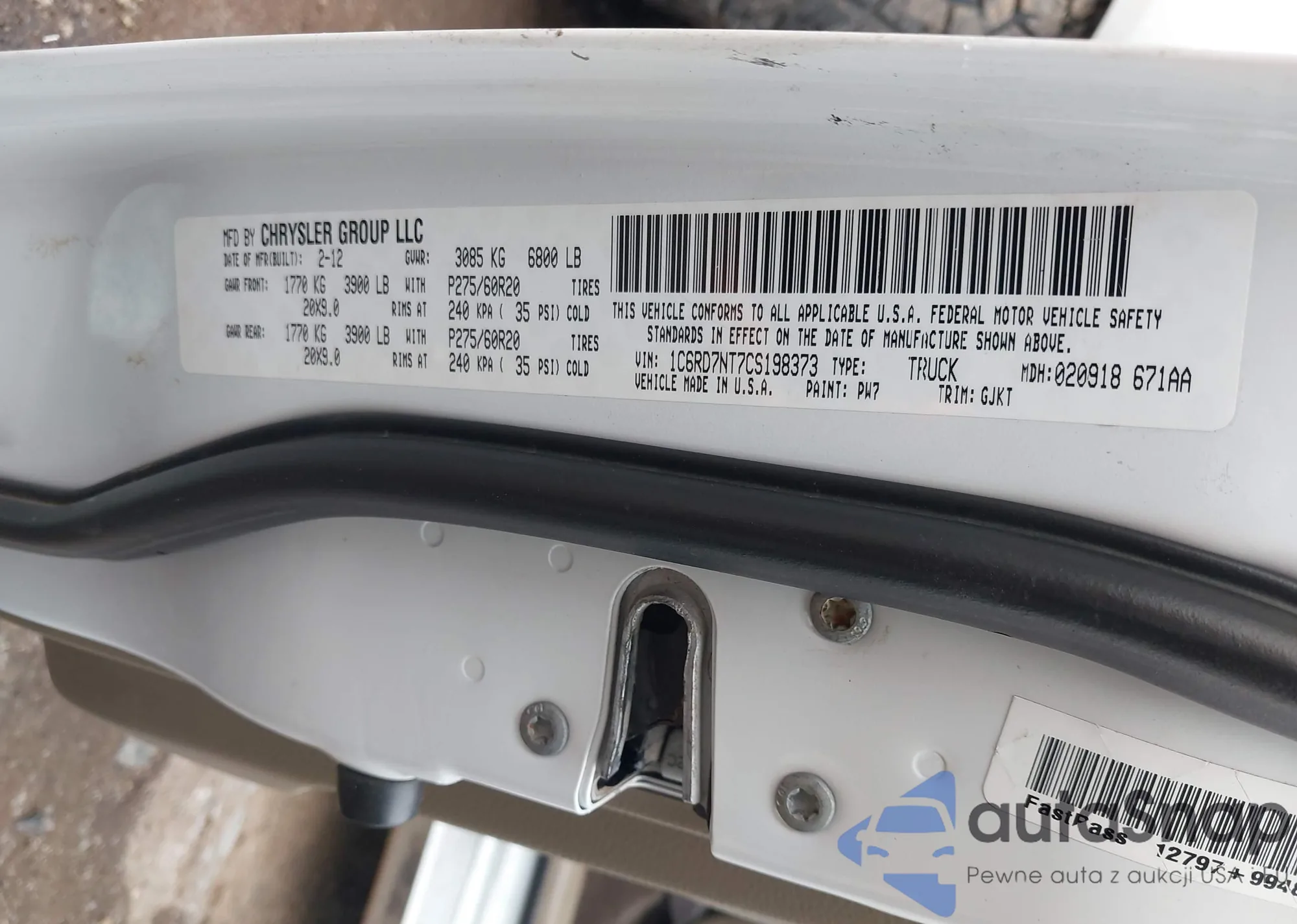 • VIN 1C6RD7NT7CS198373