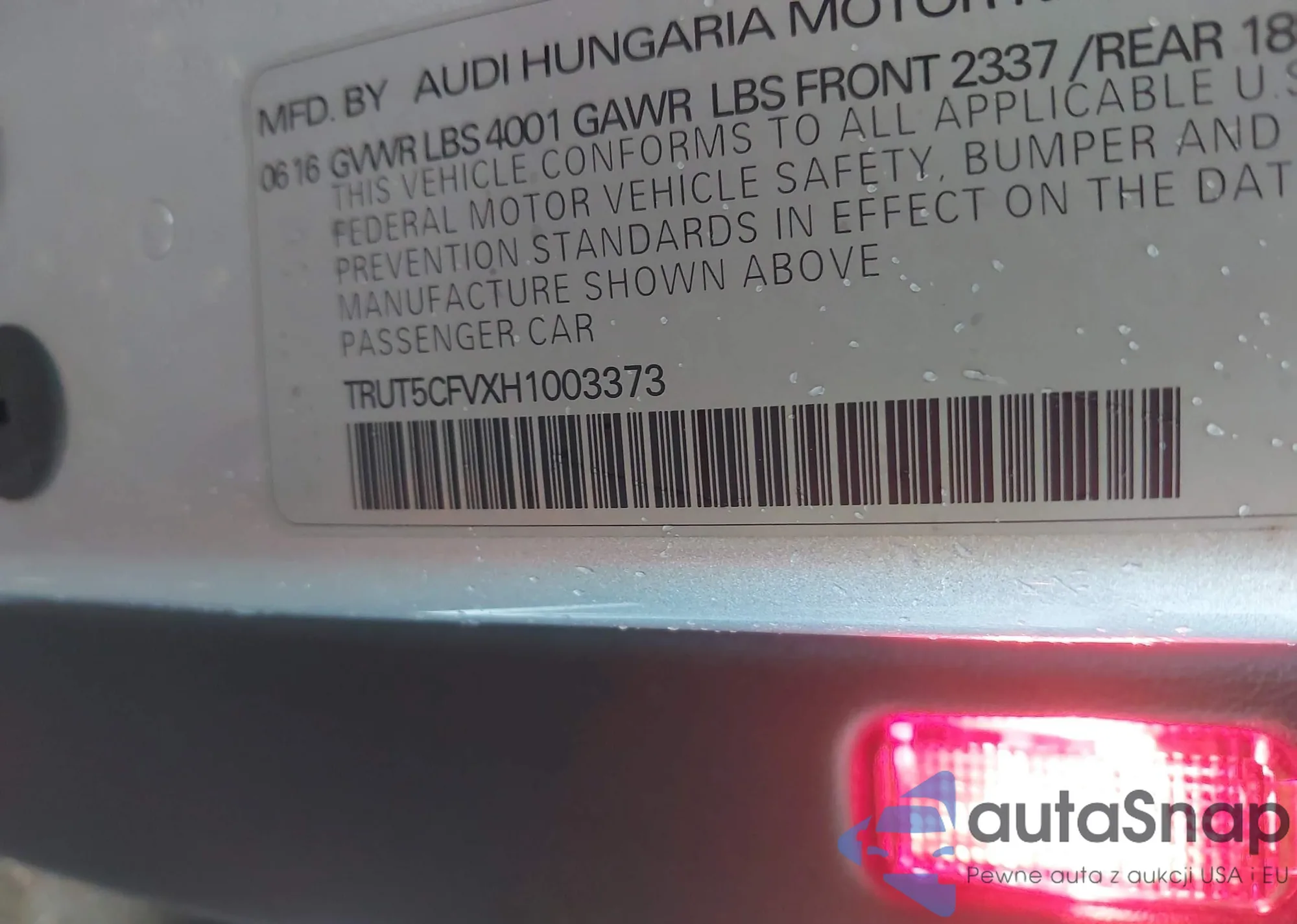 • VIN TRUT5CFVXH1003373