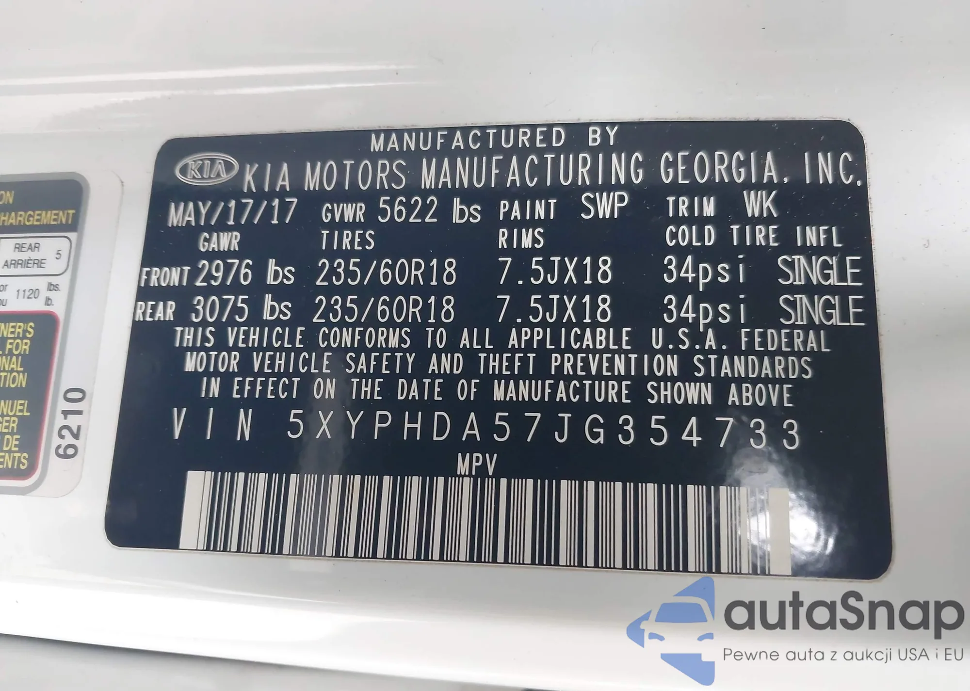 • VIN 5XYPHDA57JG354733