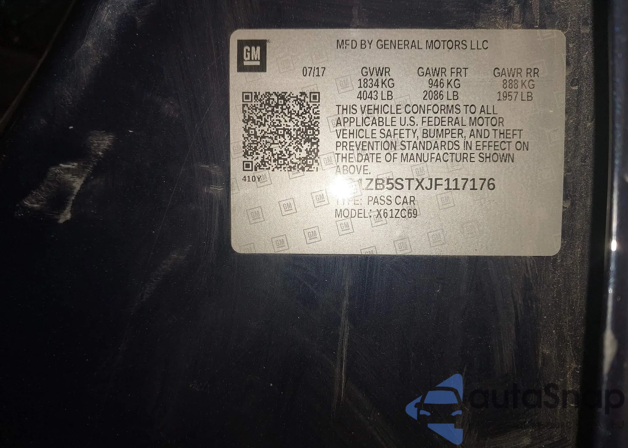 LOT: 43878320 VIN: 1G1PA5SH8E7216360