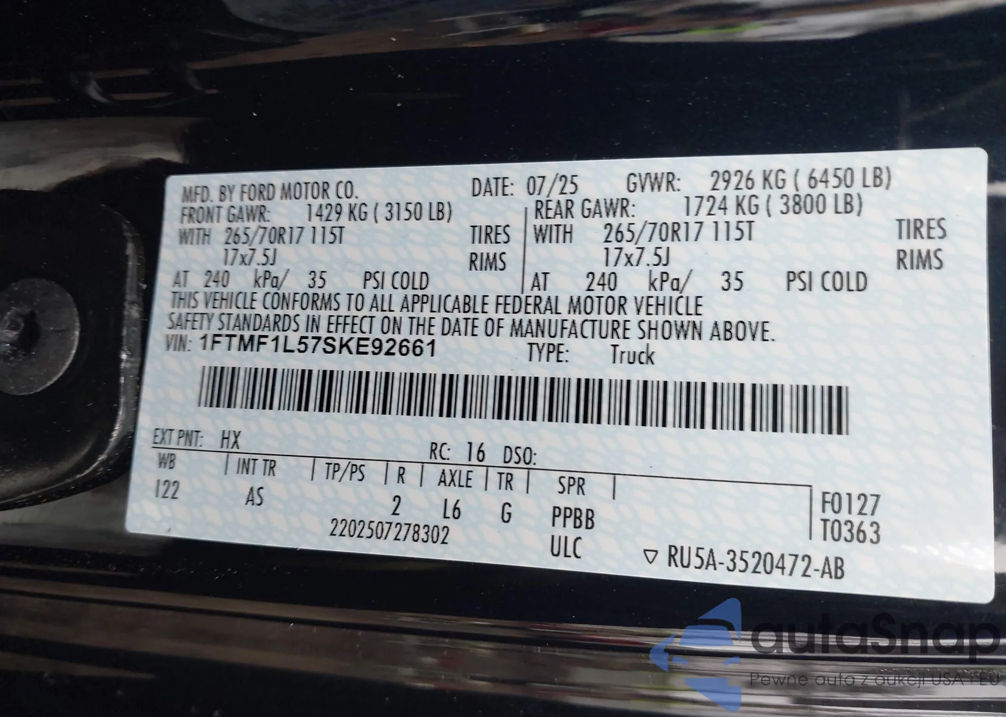 • Lot number 43878320