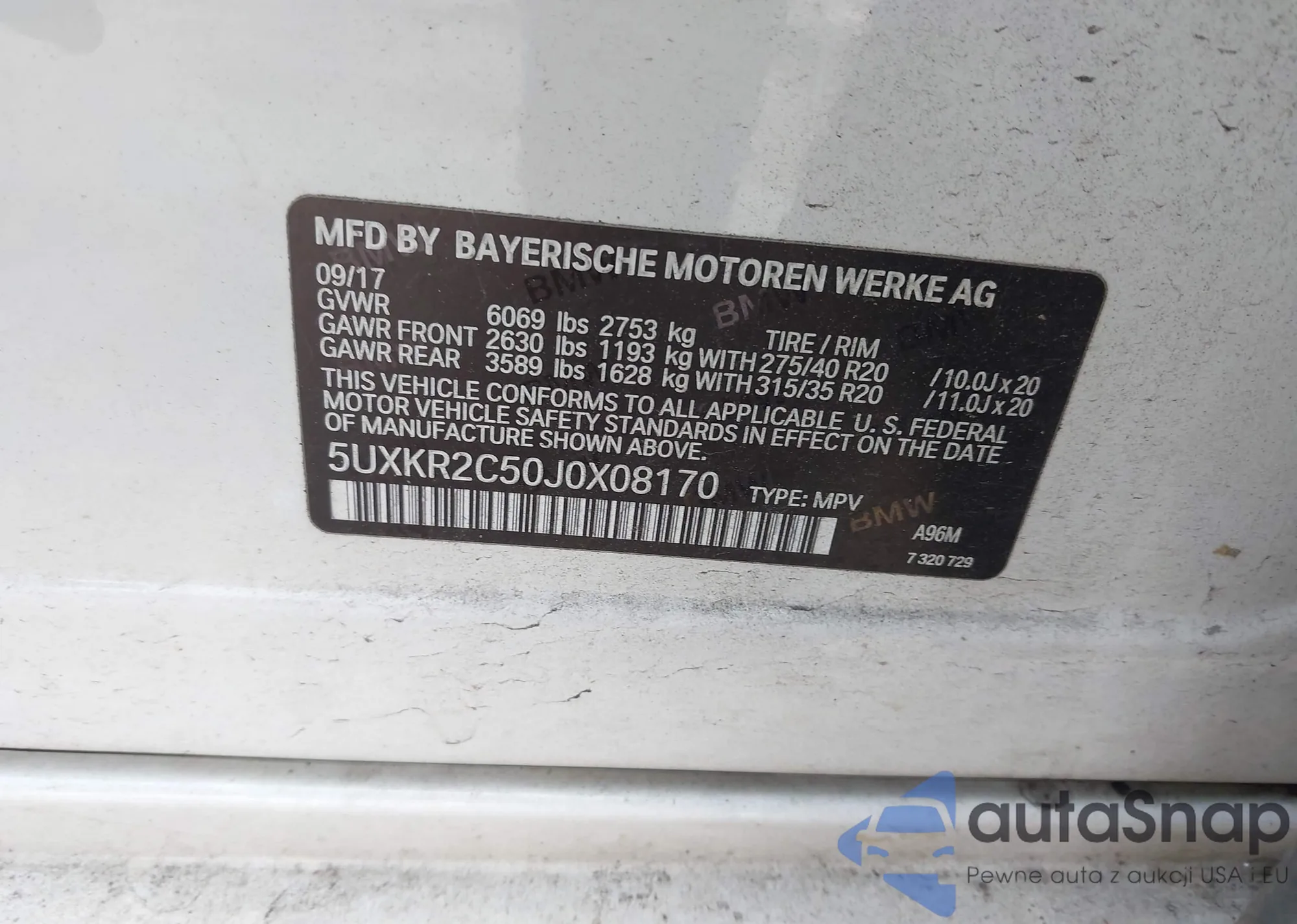 • VIN 5UXKR2C50J0X08170