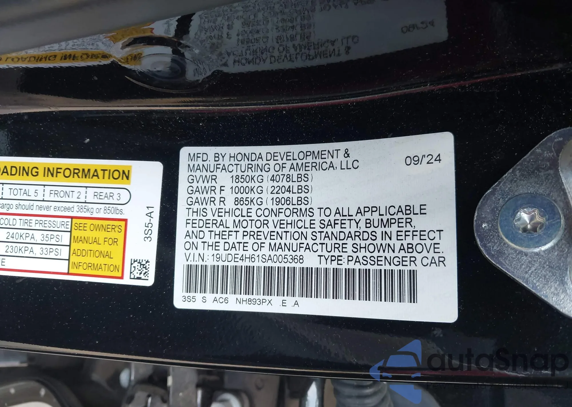 • VIN 19UDE4H61SA005368
