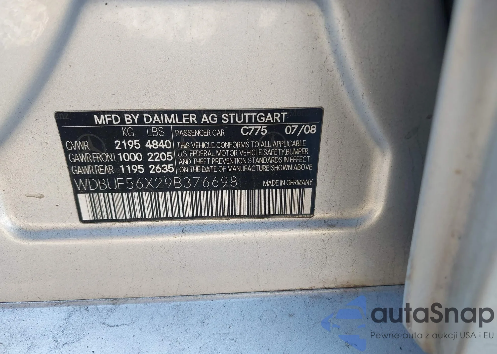 LOT: 44110425 VIN: WDBUF56X29B376698