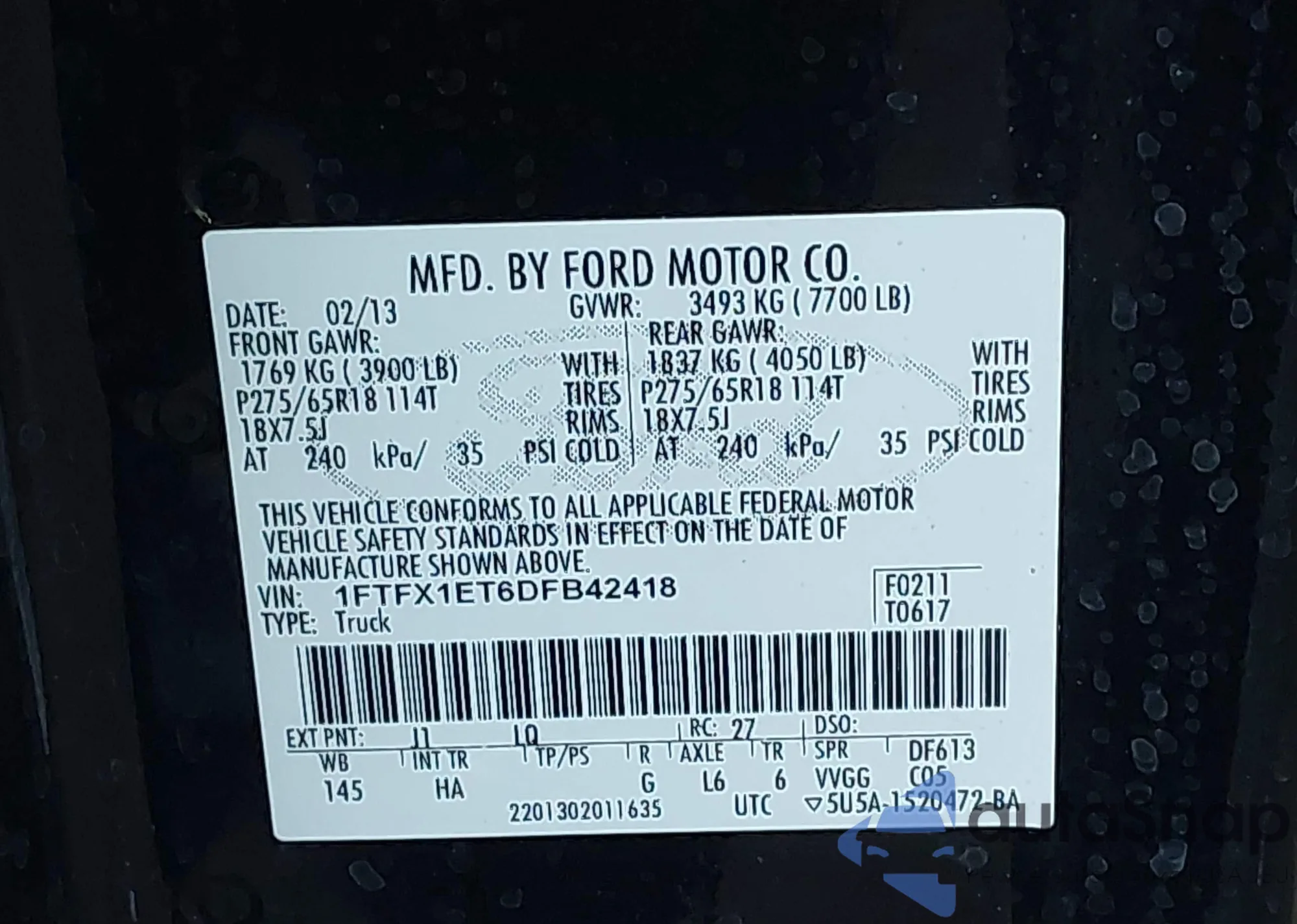 • VIN 1FTFX1ET6DFB42418