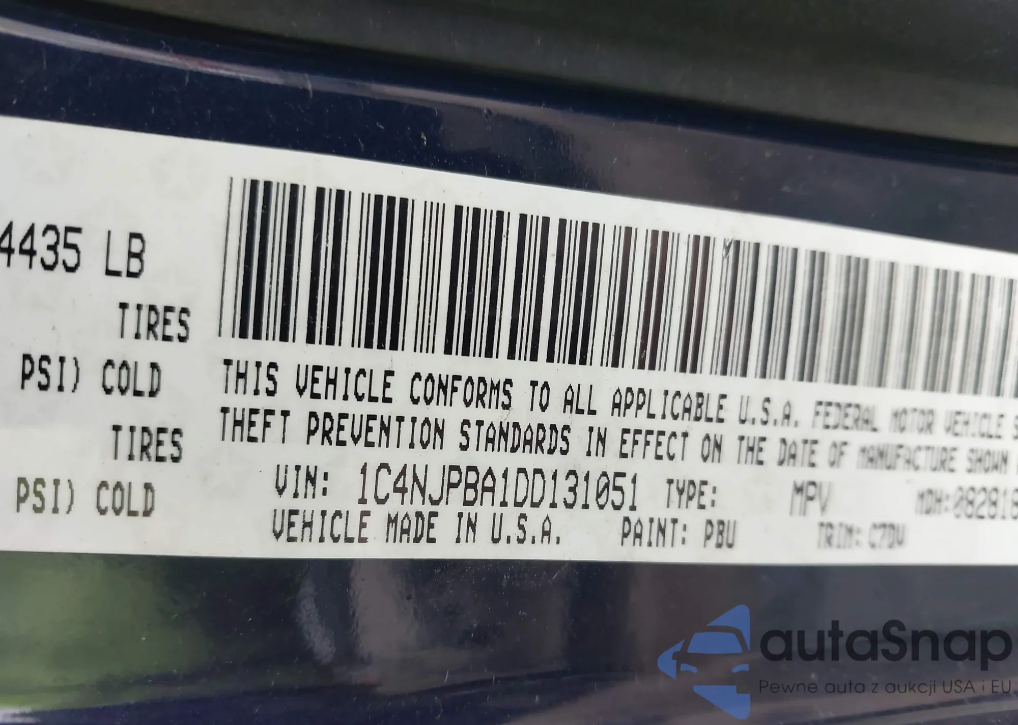 • VIN 1C4NJPBA1DD131051
