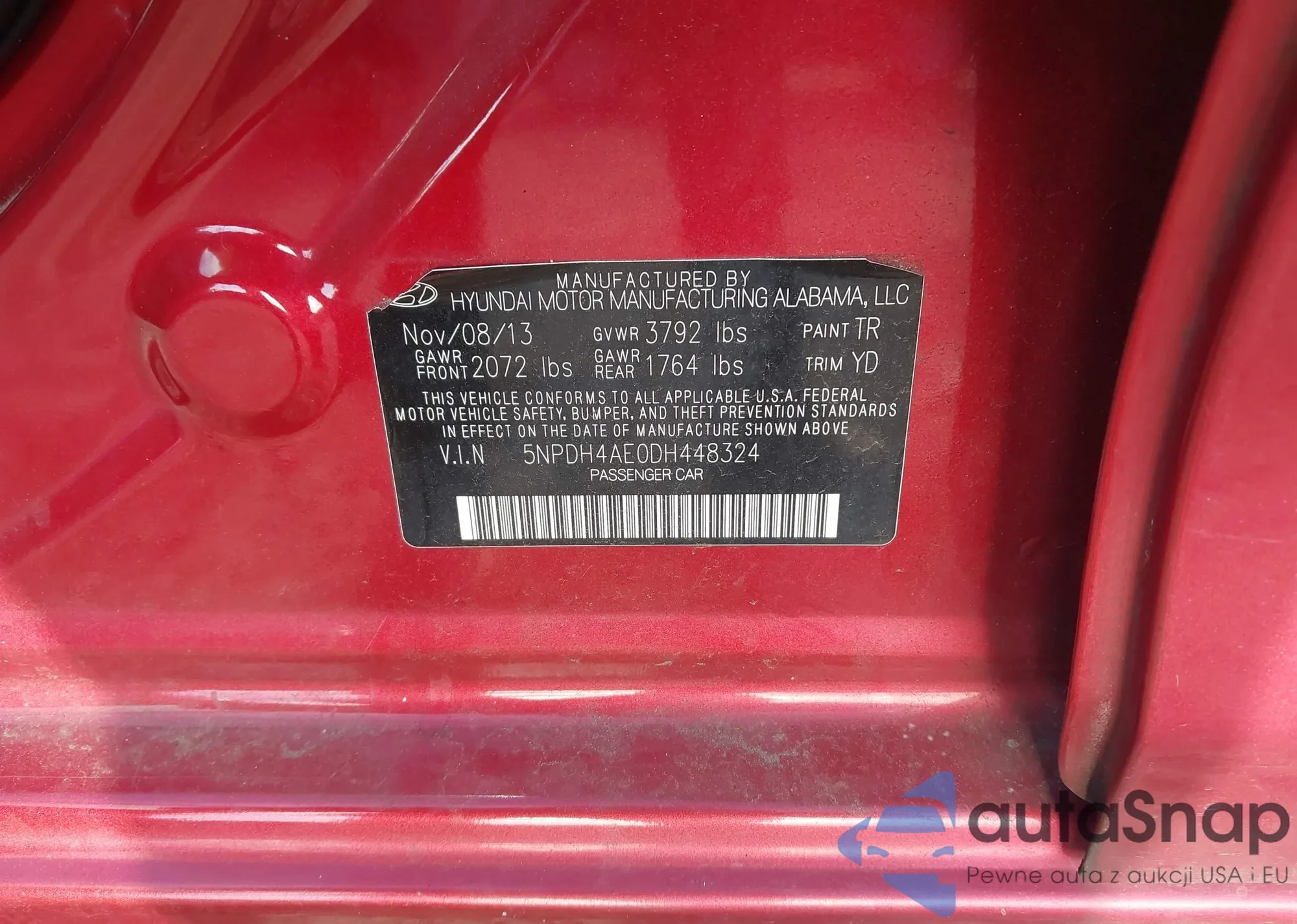 LOT: 43926291 VIN: 5NPDH4AE0FH613243