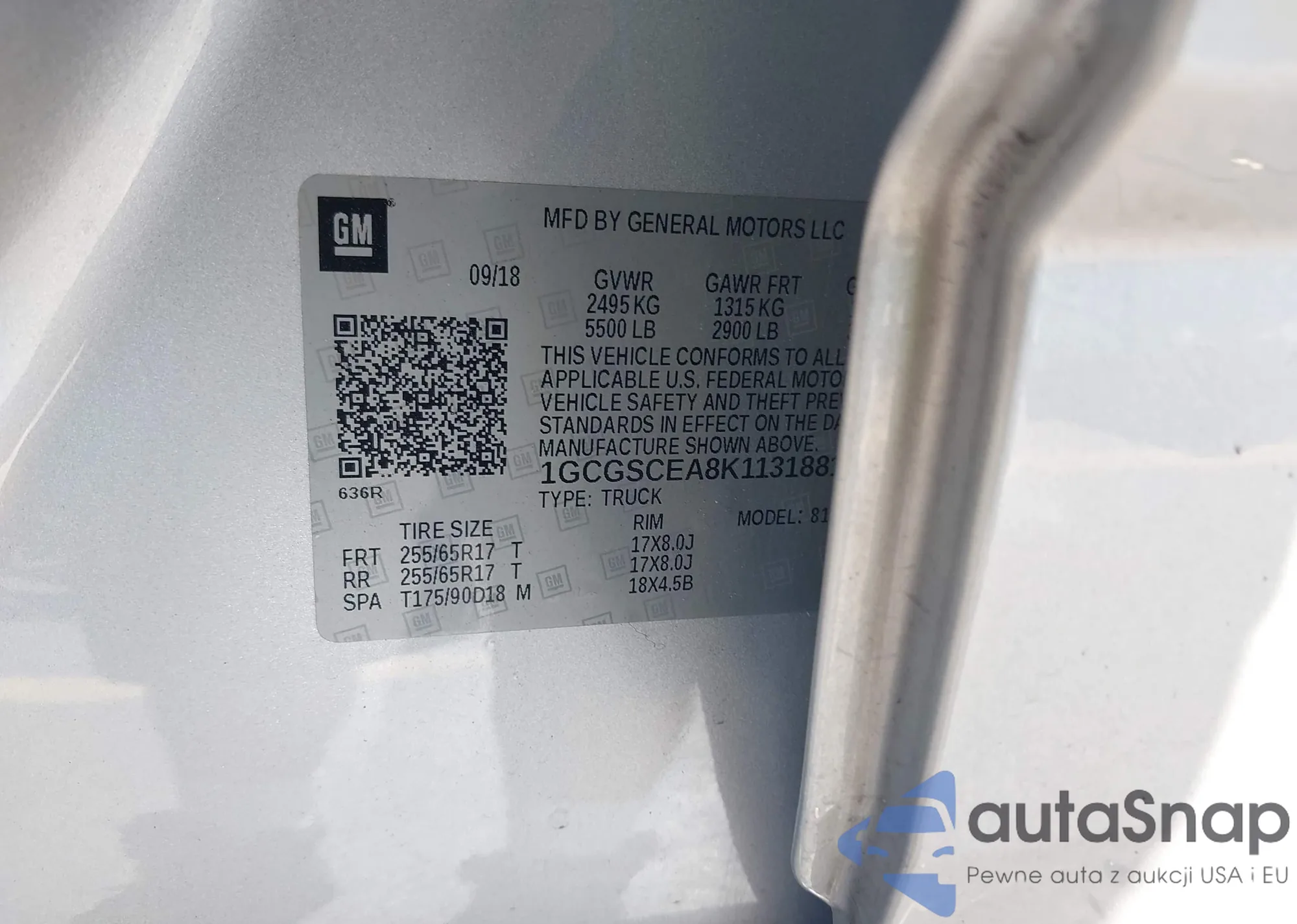 • VIN 1GCGSCEA8K1131881