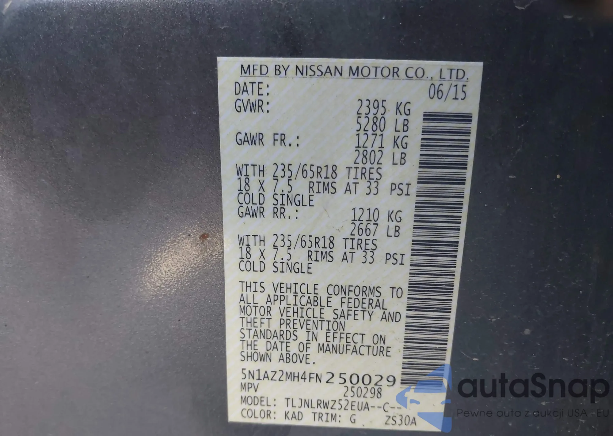 • VIN 5N1AZ2MH4FN250029