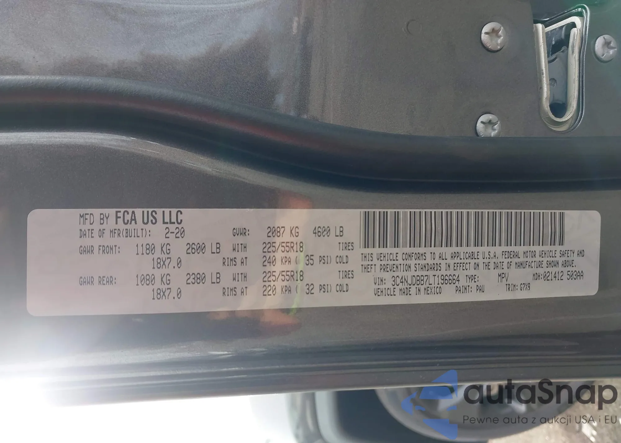 LOT: 43932484 VIN: KNDPMCAC5L7683659