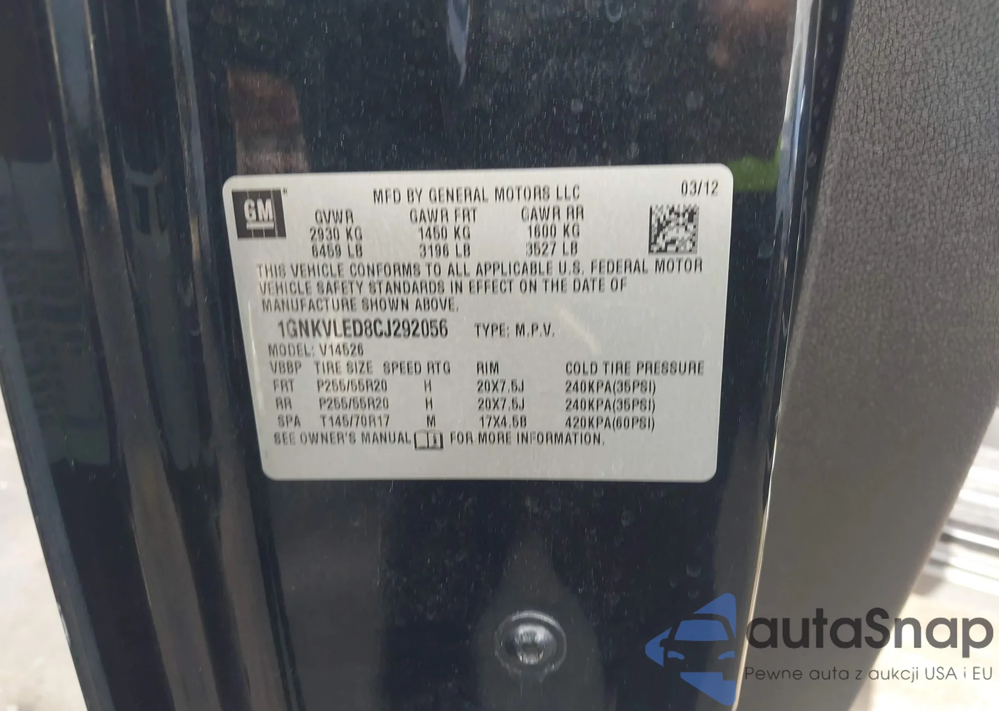 • VIN 1GNKVLED8CJ292056