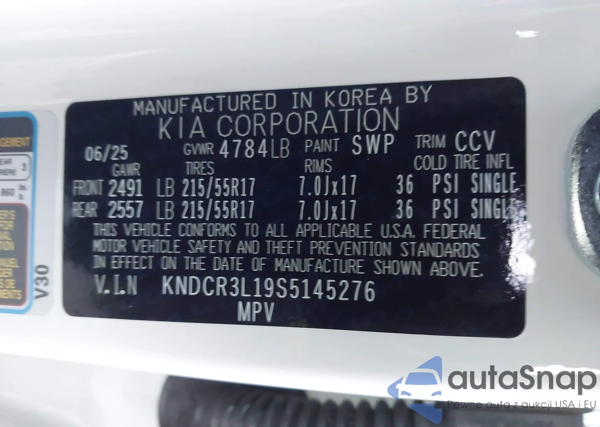 • VIN KNDCR3L19S5145276