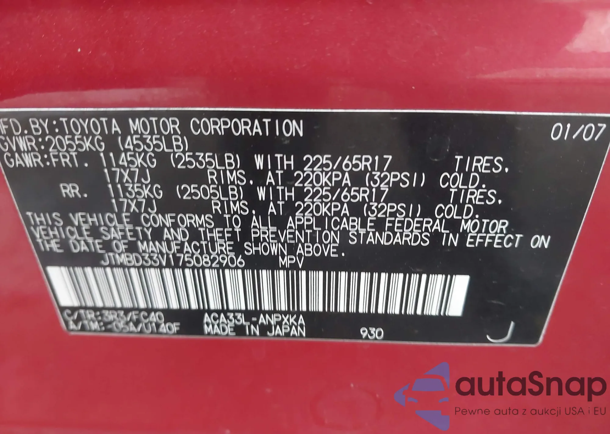 LOT: 43967111 VIN: JHLRE48568C047238