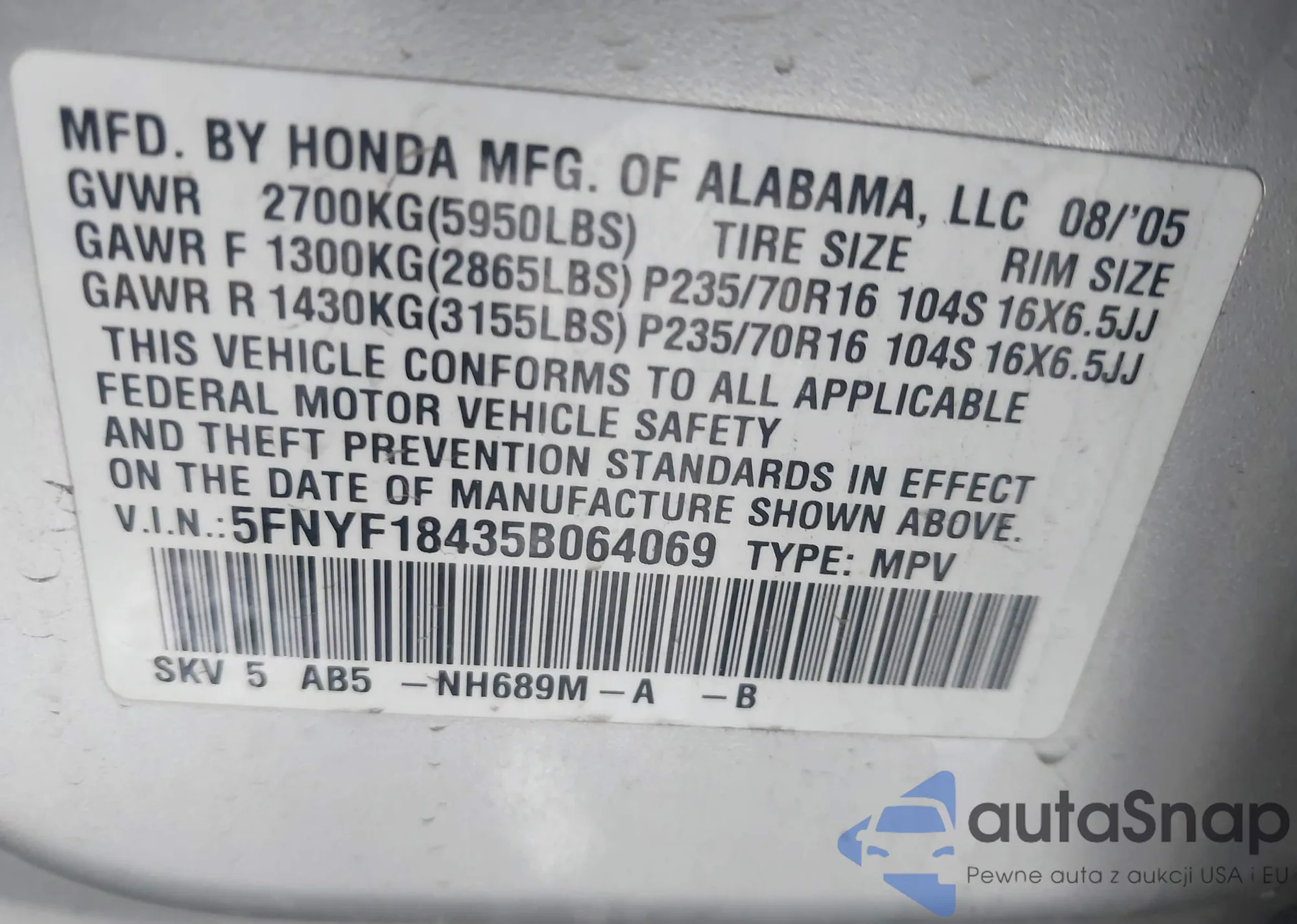 LOT: 44060519 VIN: JHMCM56663C065091