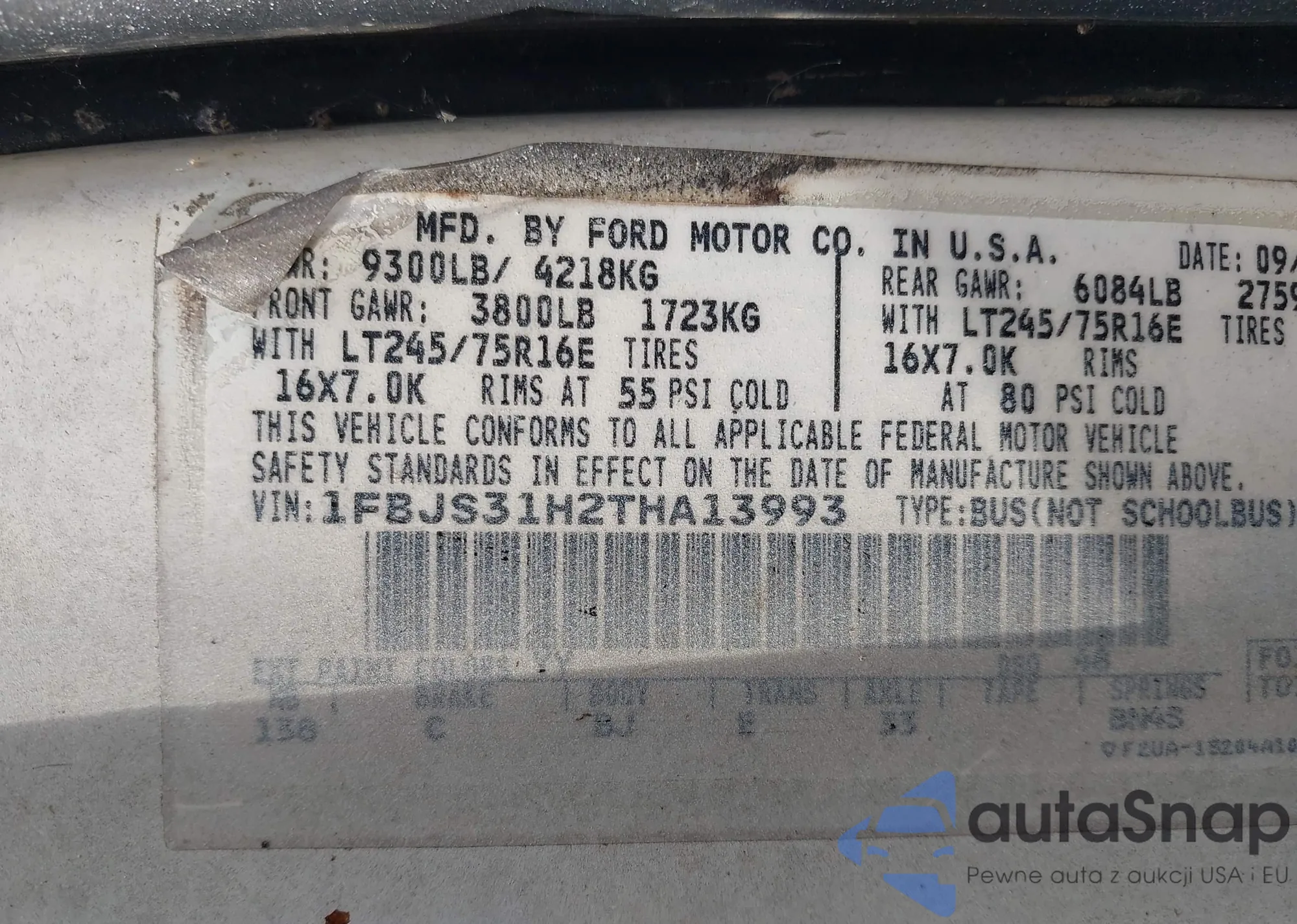 LOT: 44099263 VIN: 1FBJS31H2THA13993