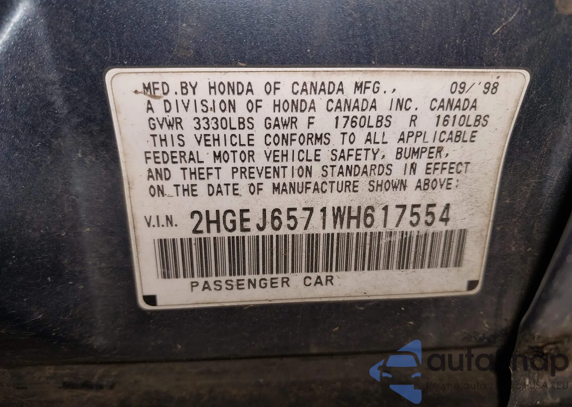 • VIN 2HGEJ6571WH617554