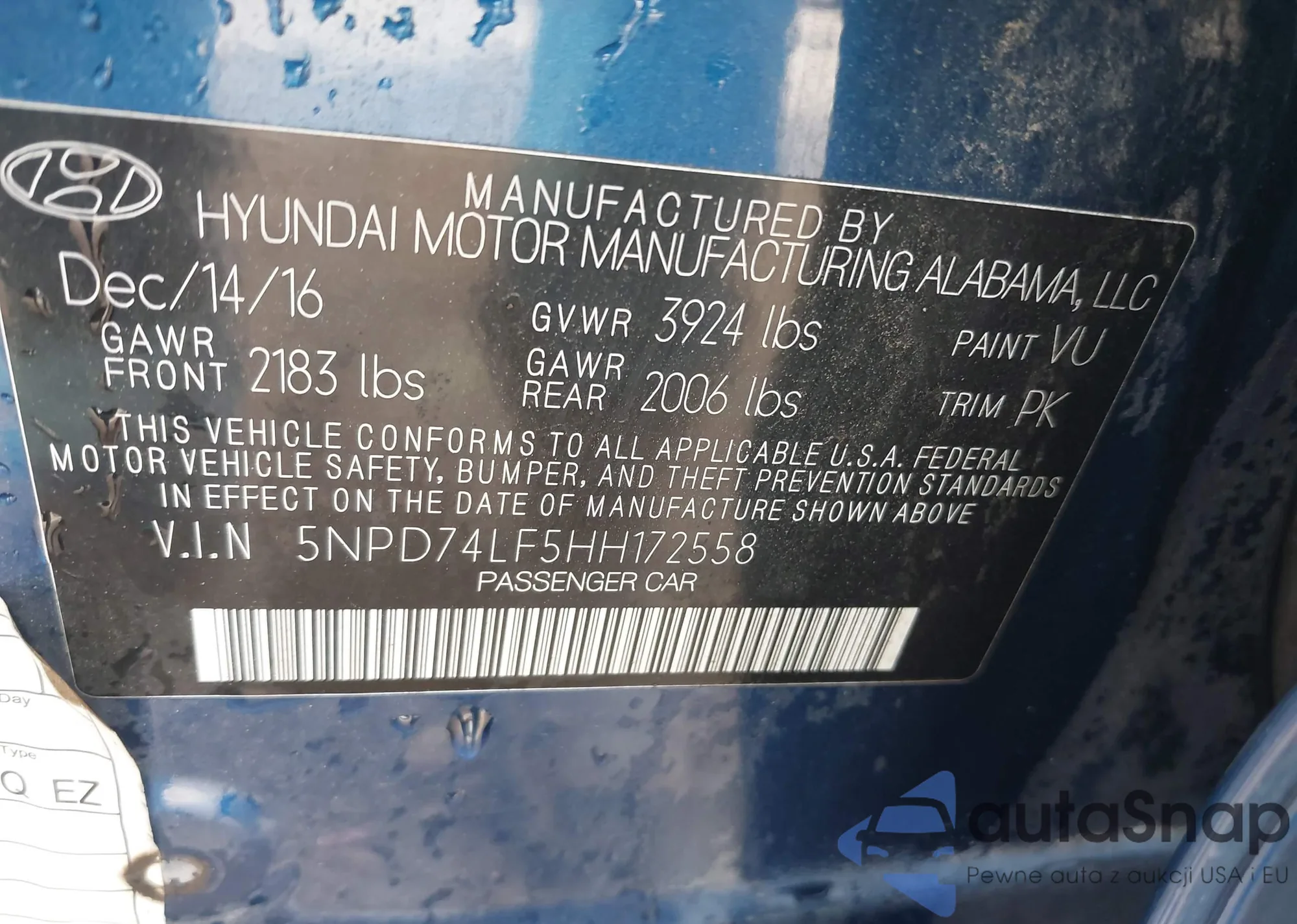 • VIN 5NPD74LF5HH172558