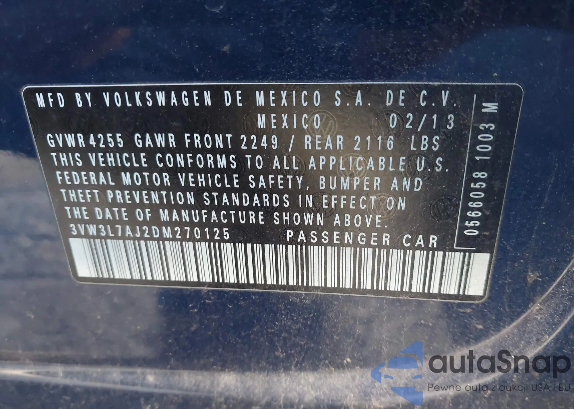 LOT: 44000215 VIN: 3VW3L7AJ2DM270125