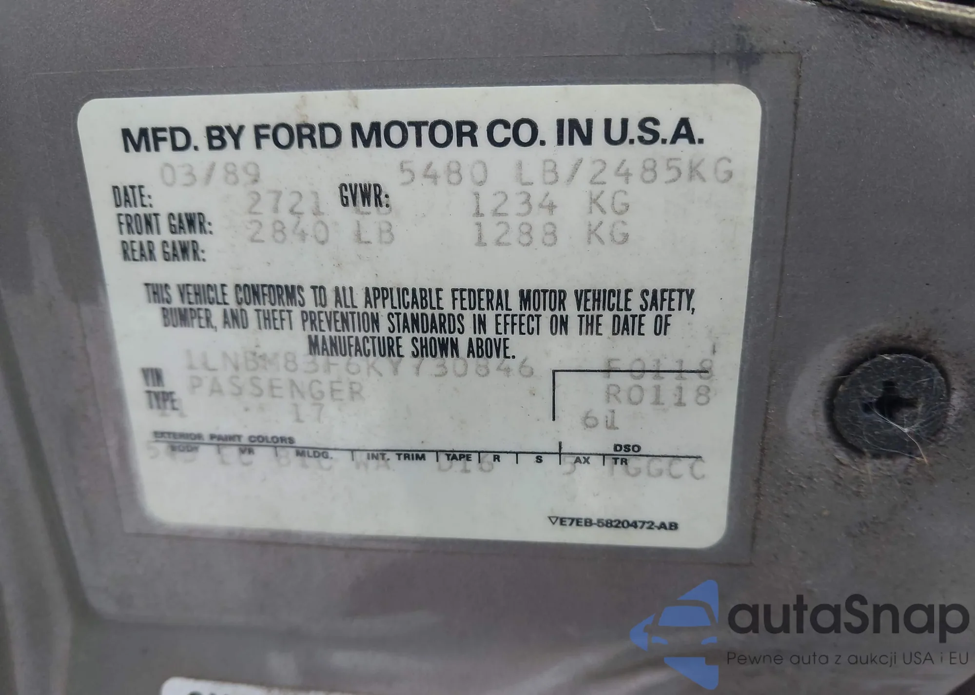 LOT: 44052569 VIN: 1LNBM83F6KY730846