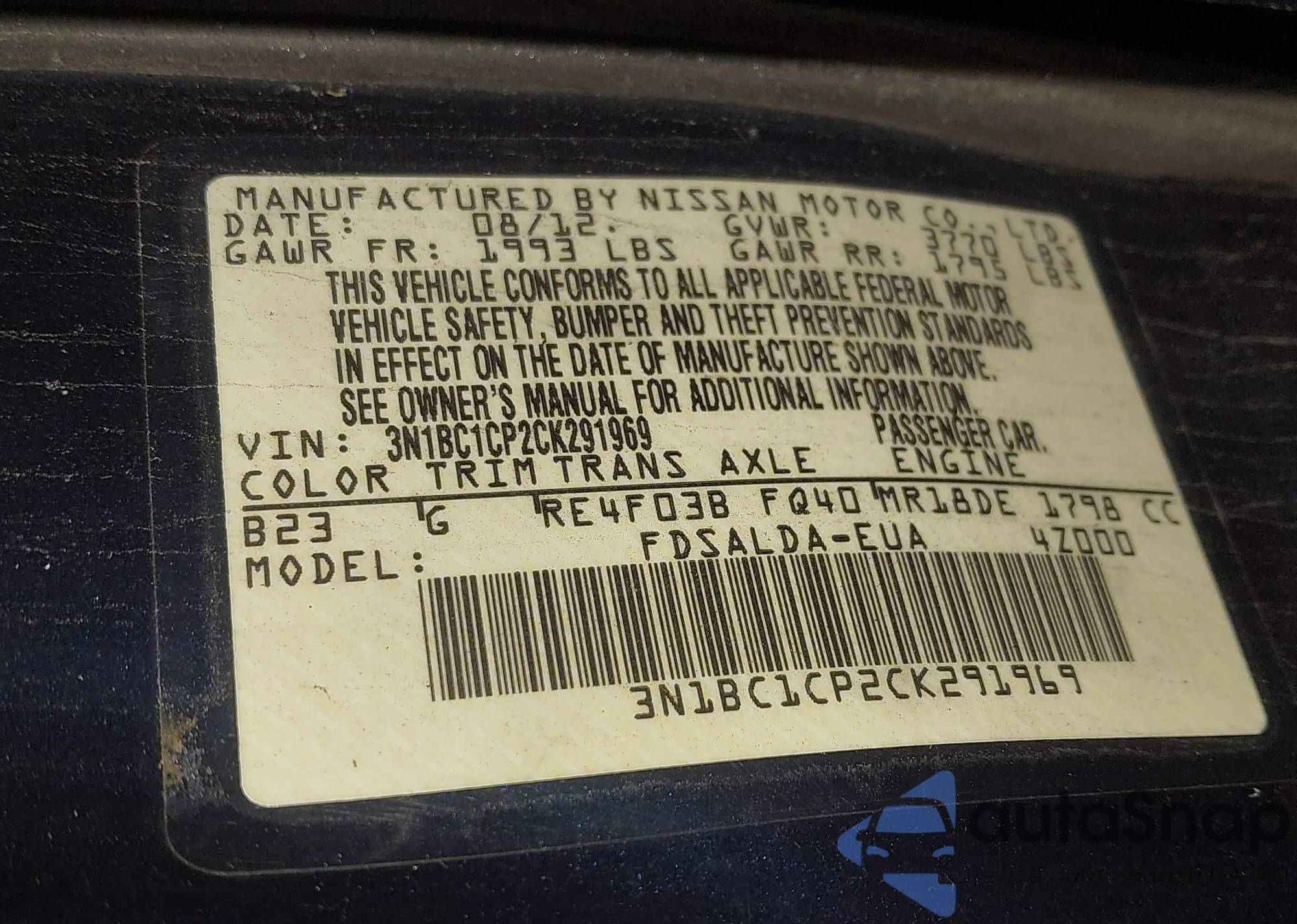 • VIN 3N1BC1CP2CK291969