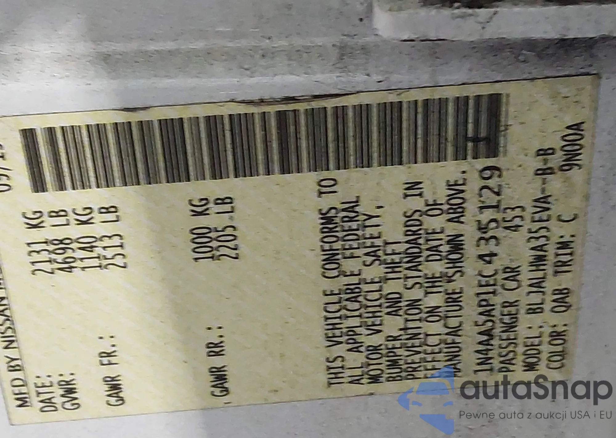 • VIN 1N4AL3AP0GC165215