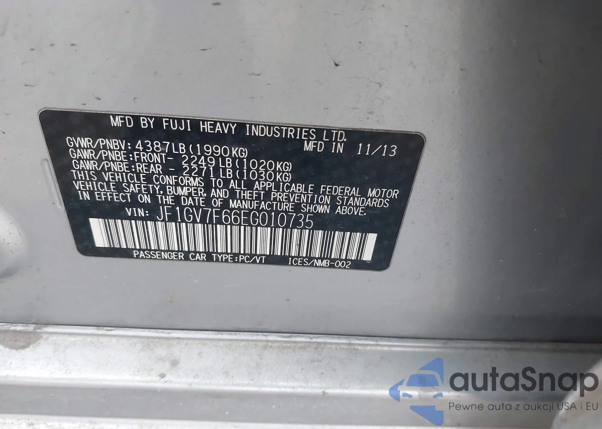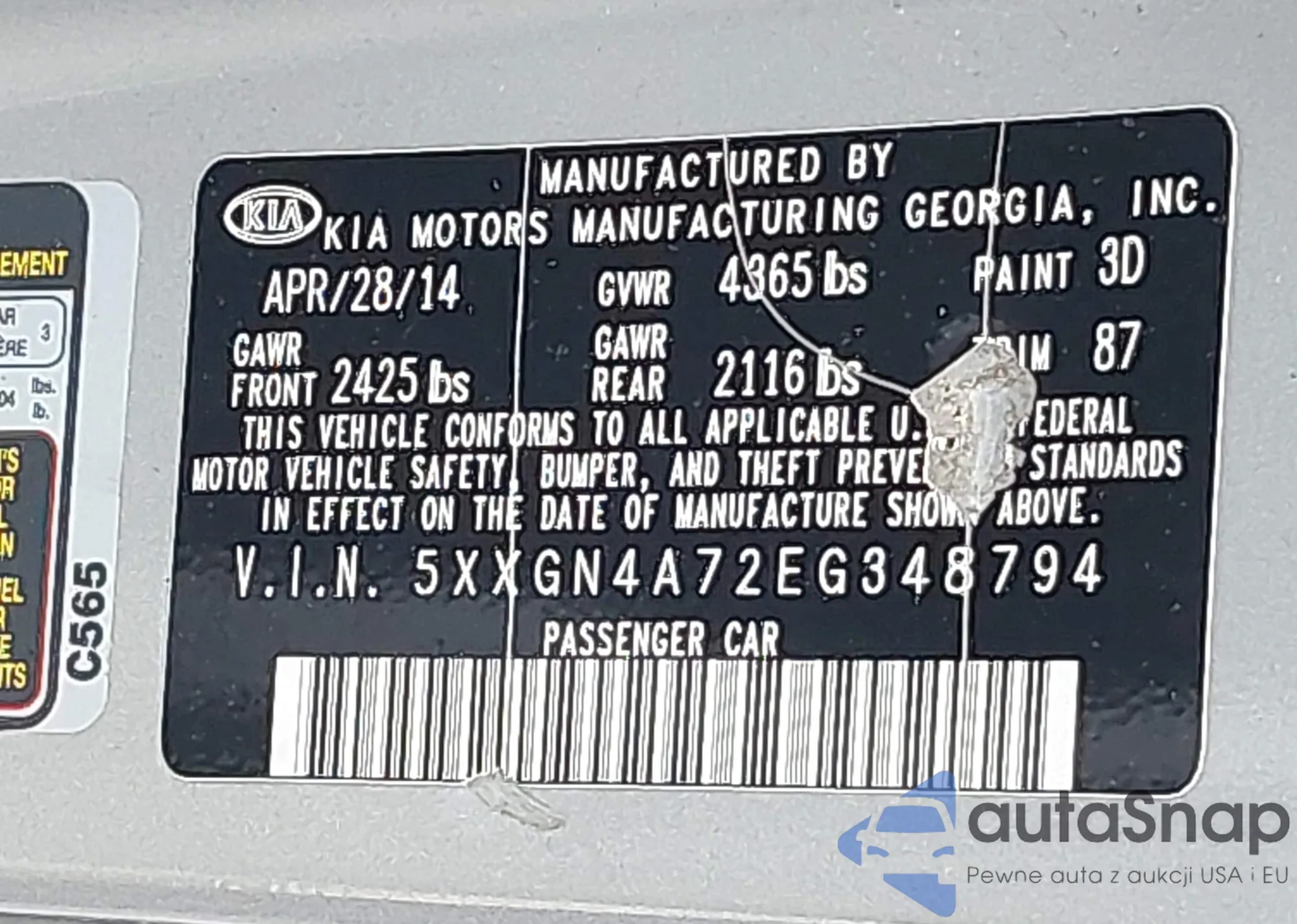 • VIN 7SAYGAEE6SF265117