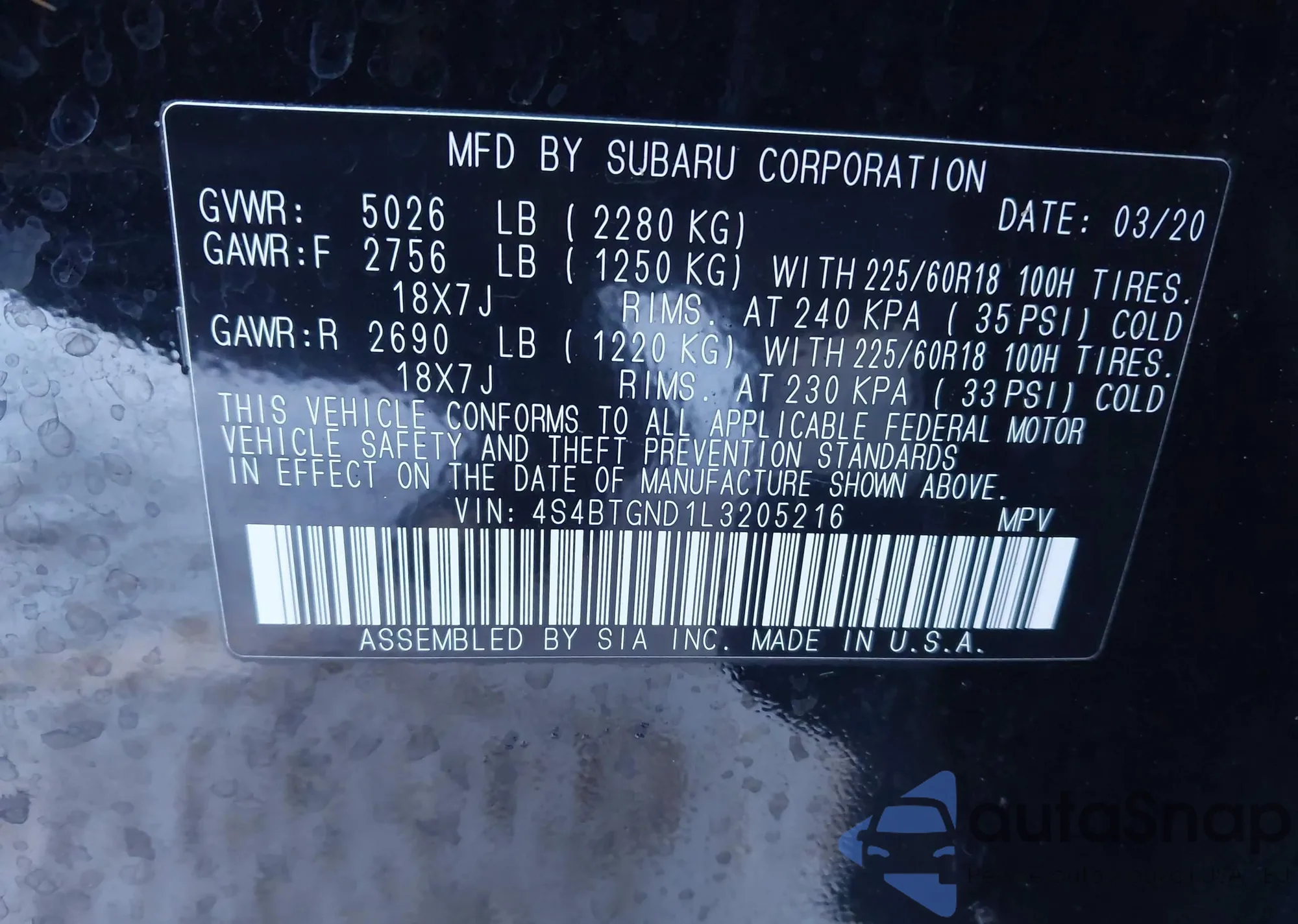 LOT: 43847651 VIN: 4S4BTGND1L3205216