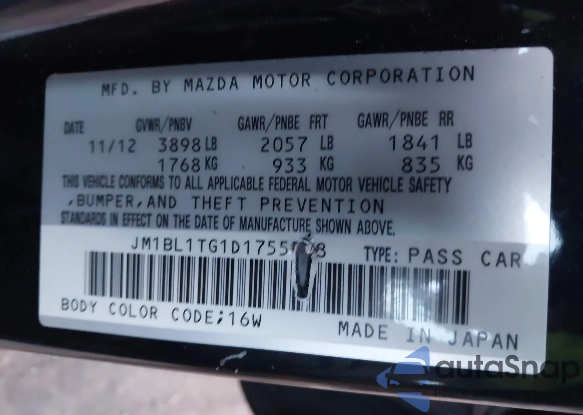LOT: 43668918 VIN: JM3KE4DY9G0914718