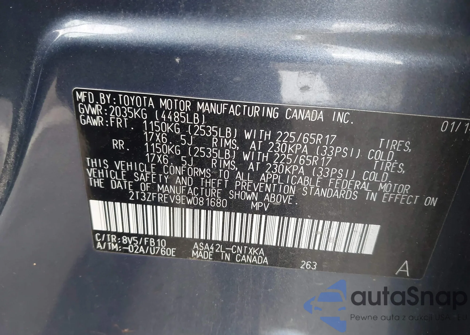 • VIN 2T3ZFREV9EW081680