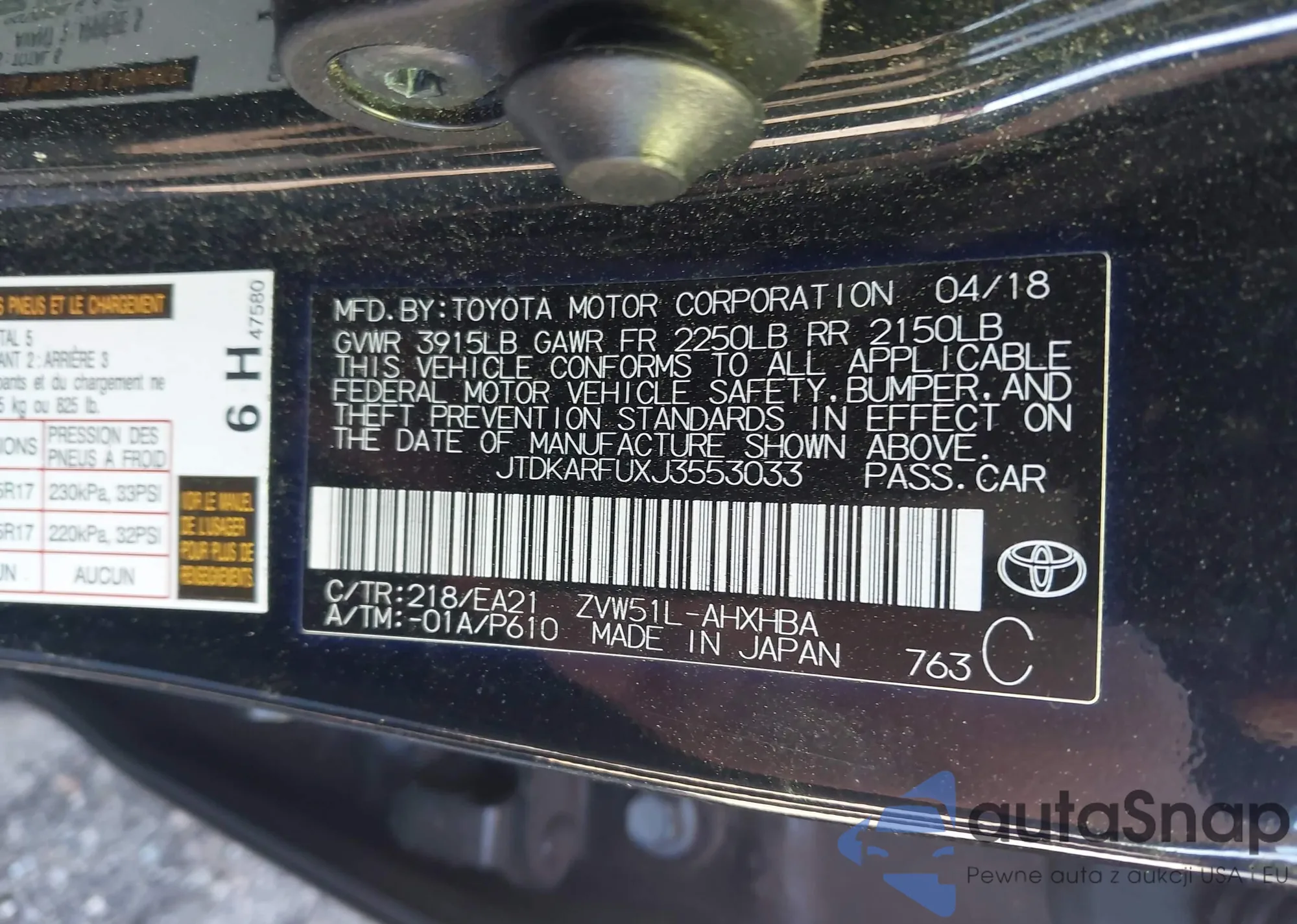 • VIN JTDKARFUXJ3553033
