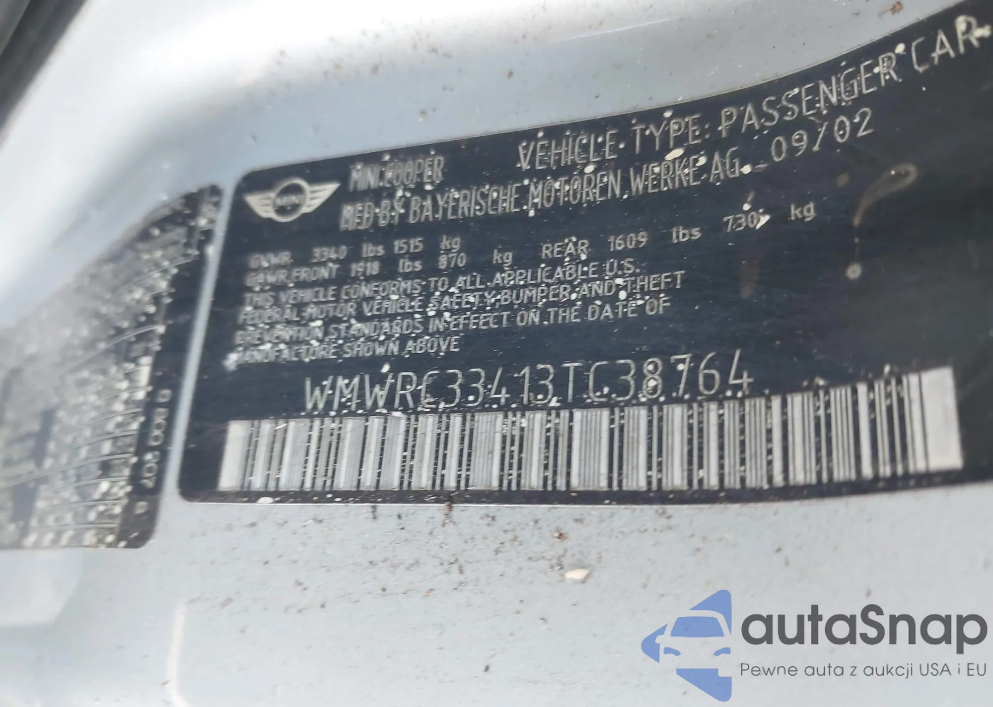 • VIN WMWRC33413TC38764