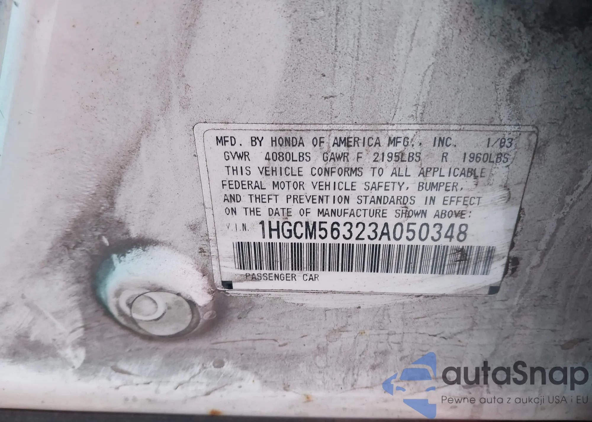 LOT: 44110014 VIN: 1HGCM56323A050348