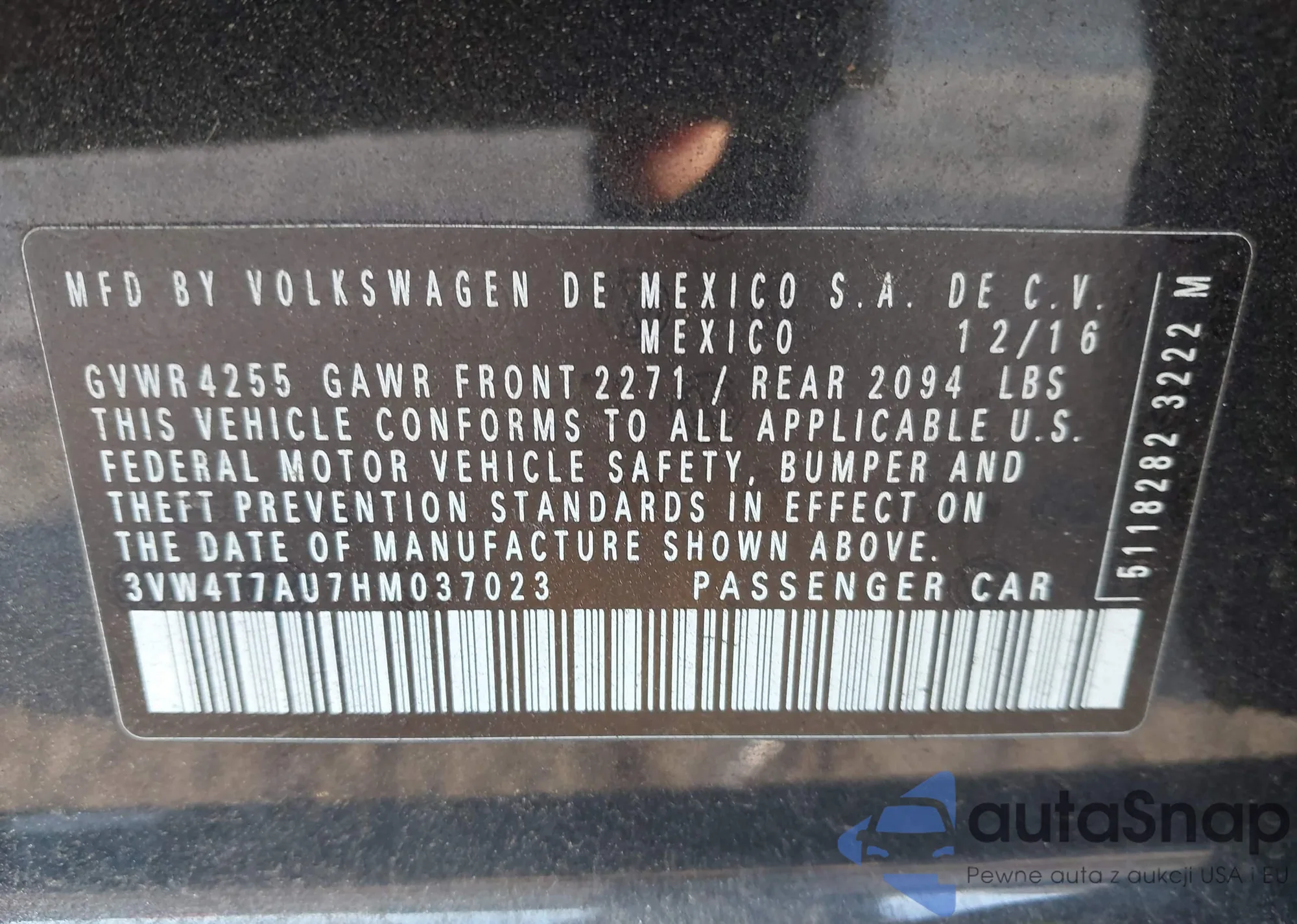 • VIN 3VW4T7AU7HM037023