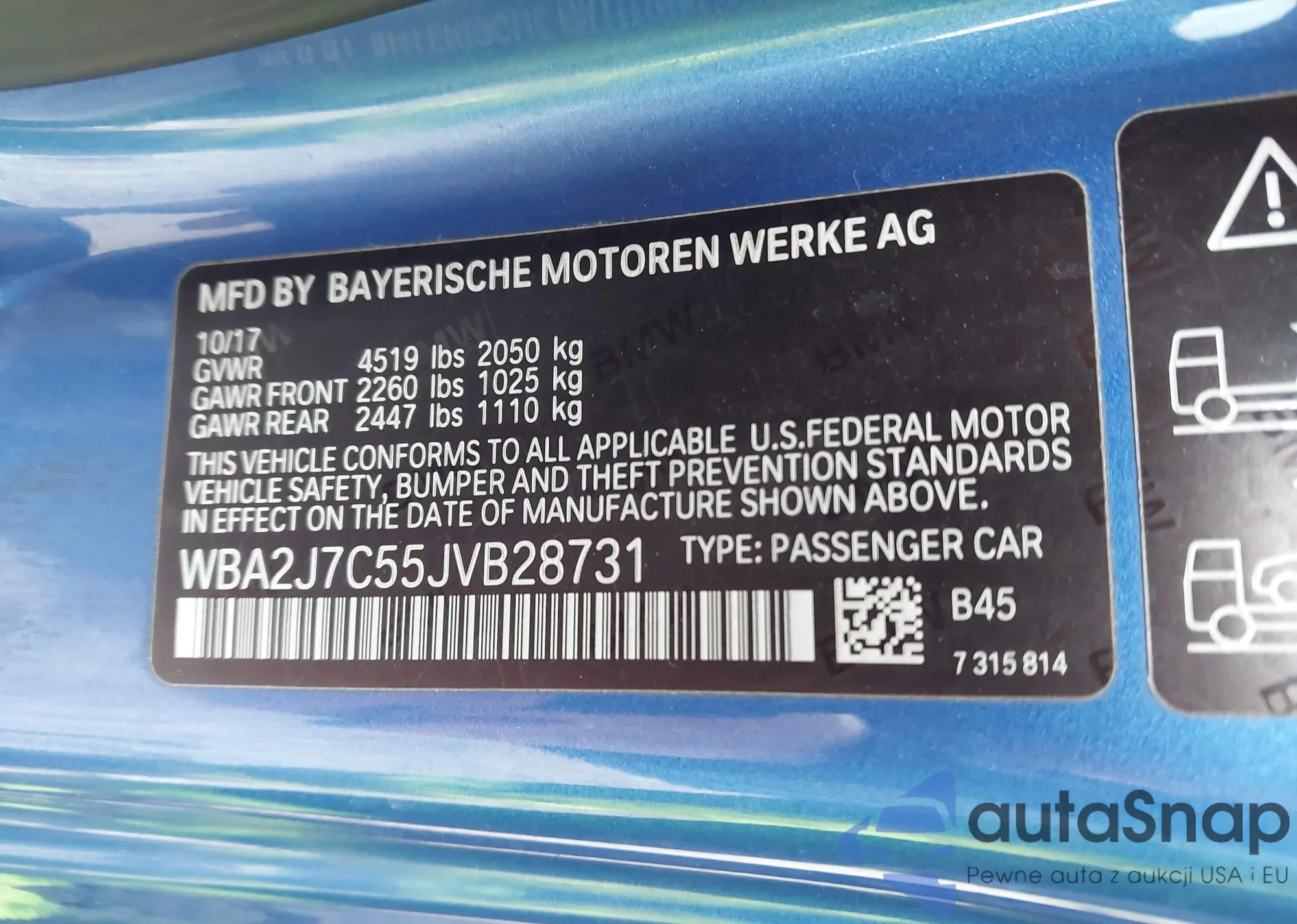 LOT: 43989961 VIN: WBA2J7C55JVB28731