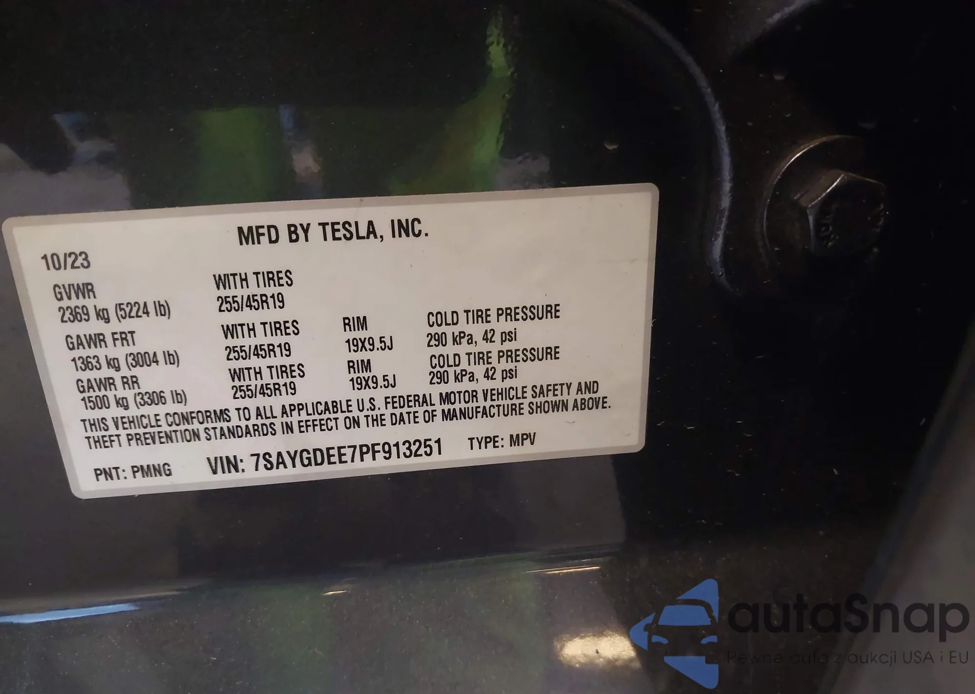 • VIN 7SAYGDEE7PF913251