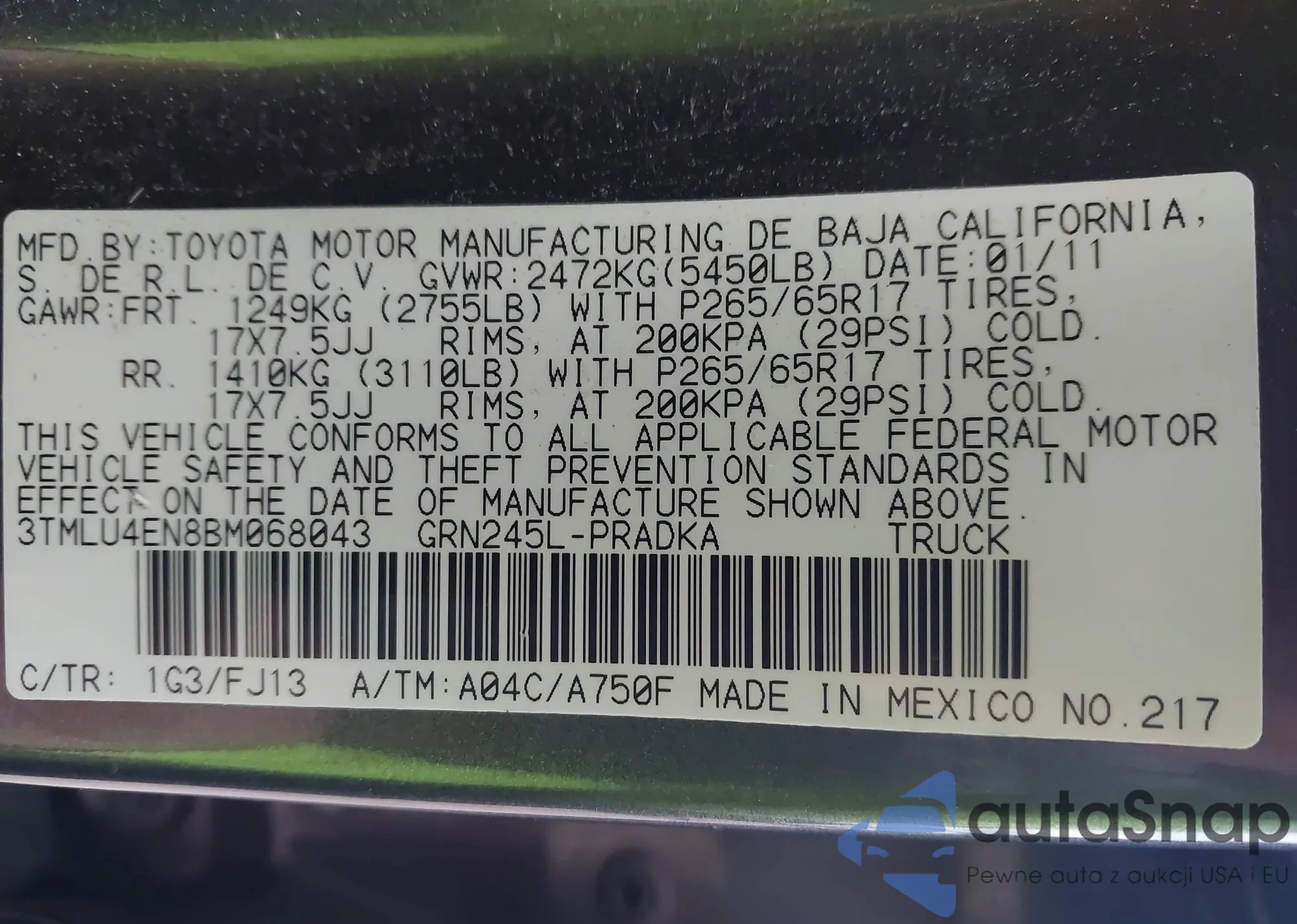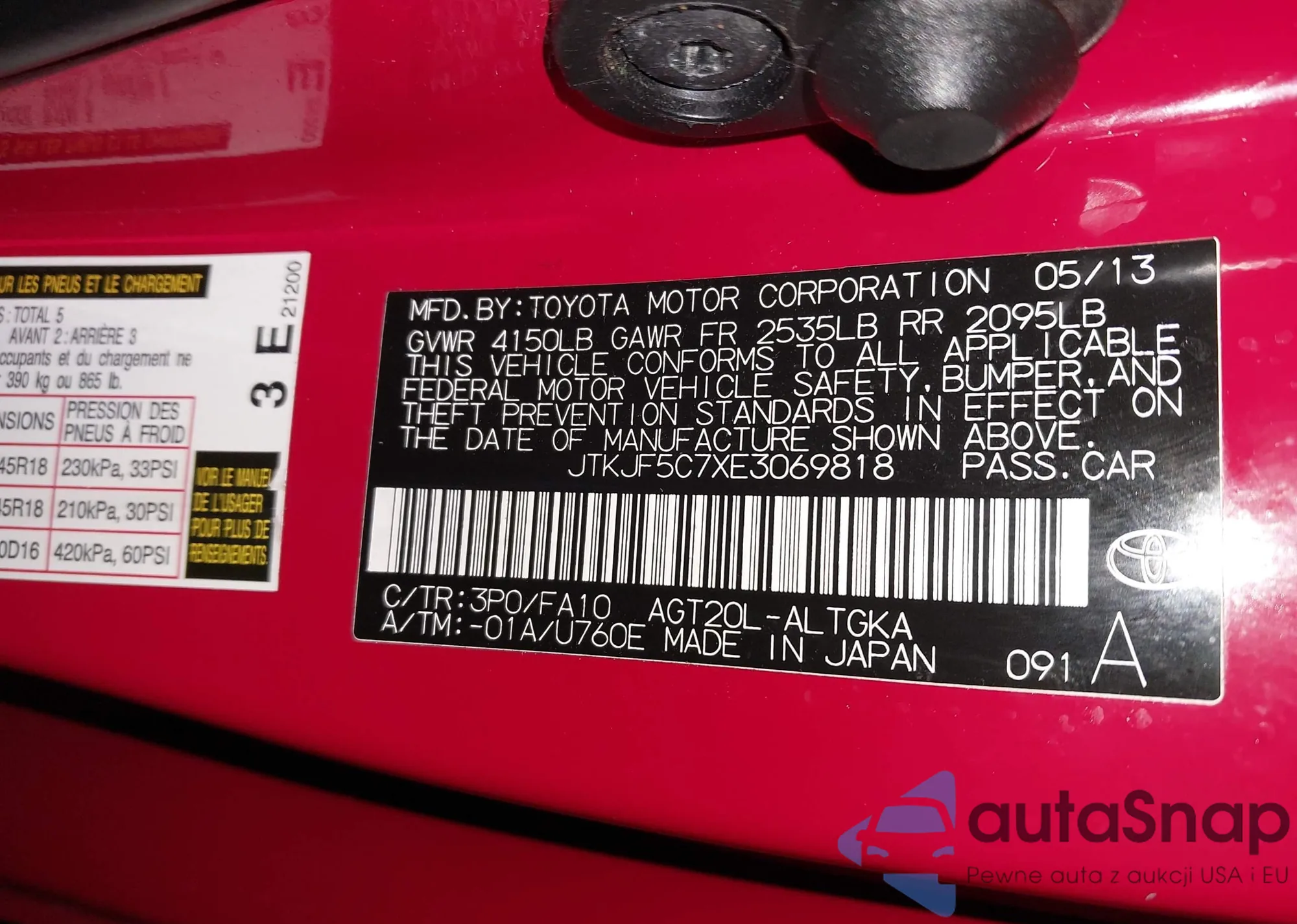 • VIN JF1GJAB68DH028757