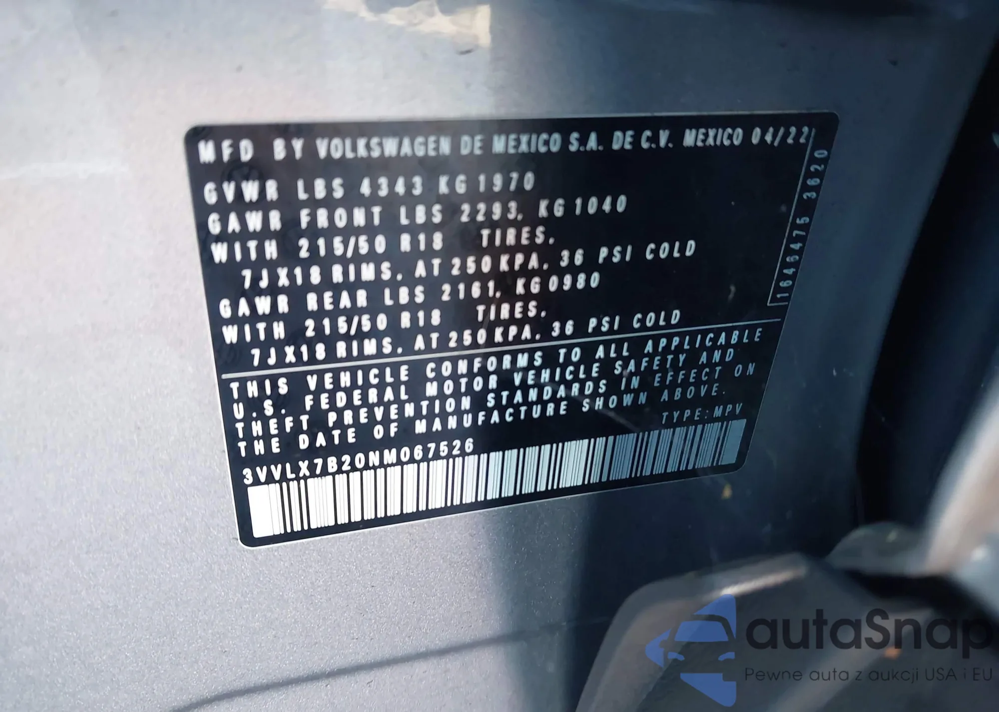 • VIN 3VVLX7B20NM067526