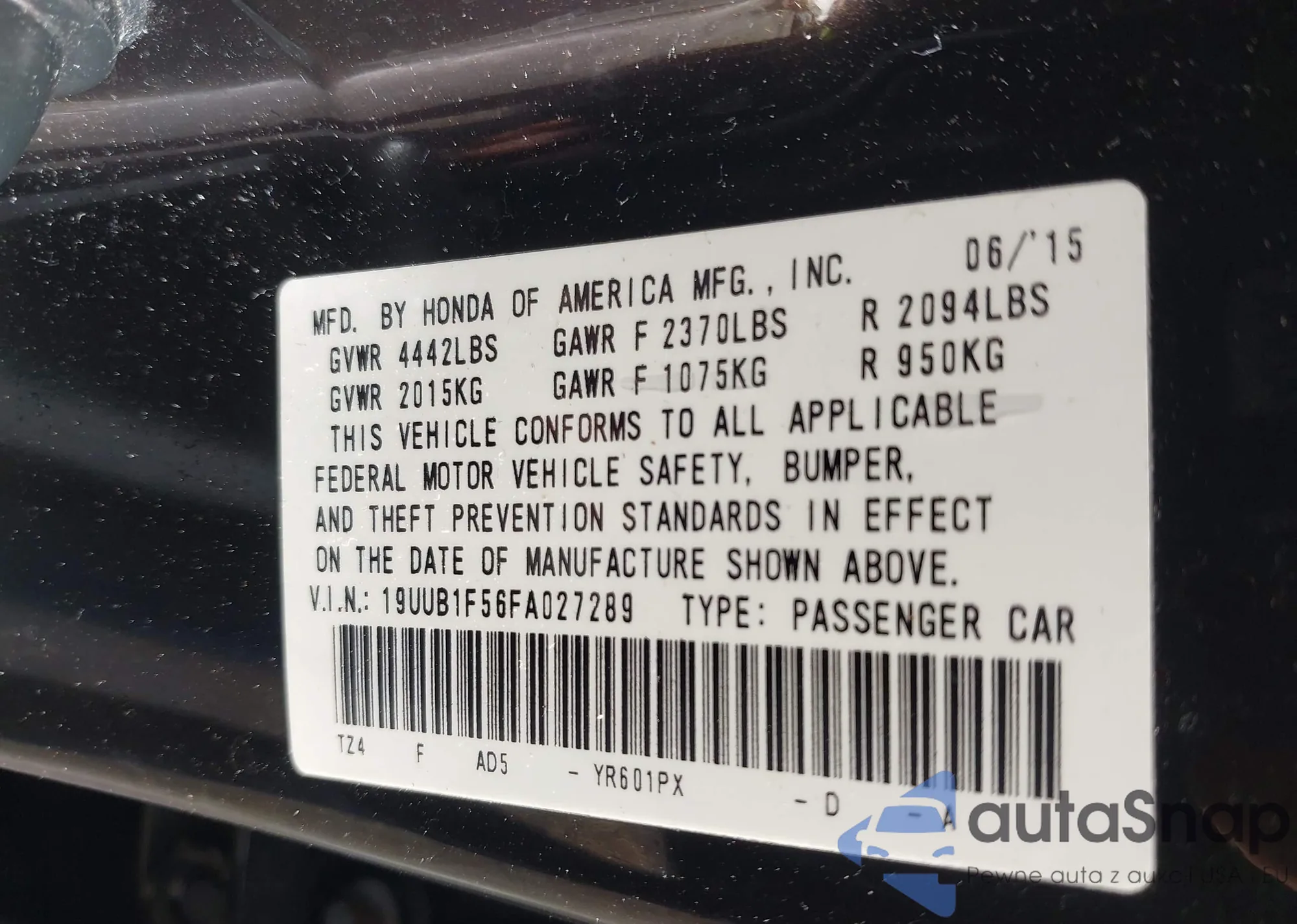 • VIN 19UUB1F56FA027289