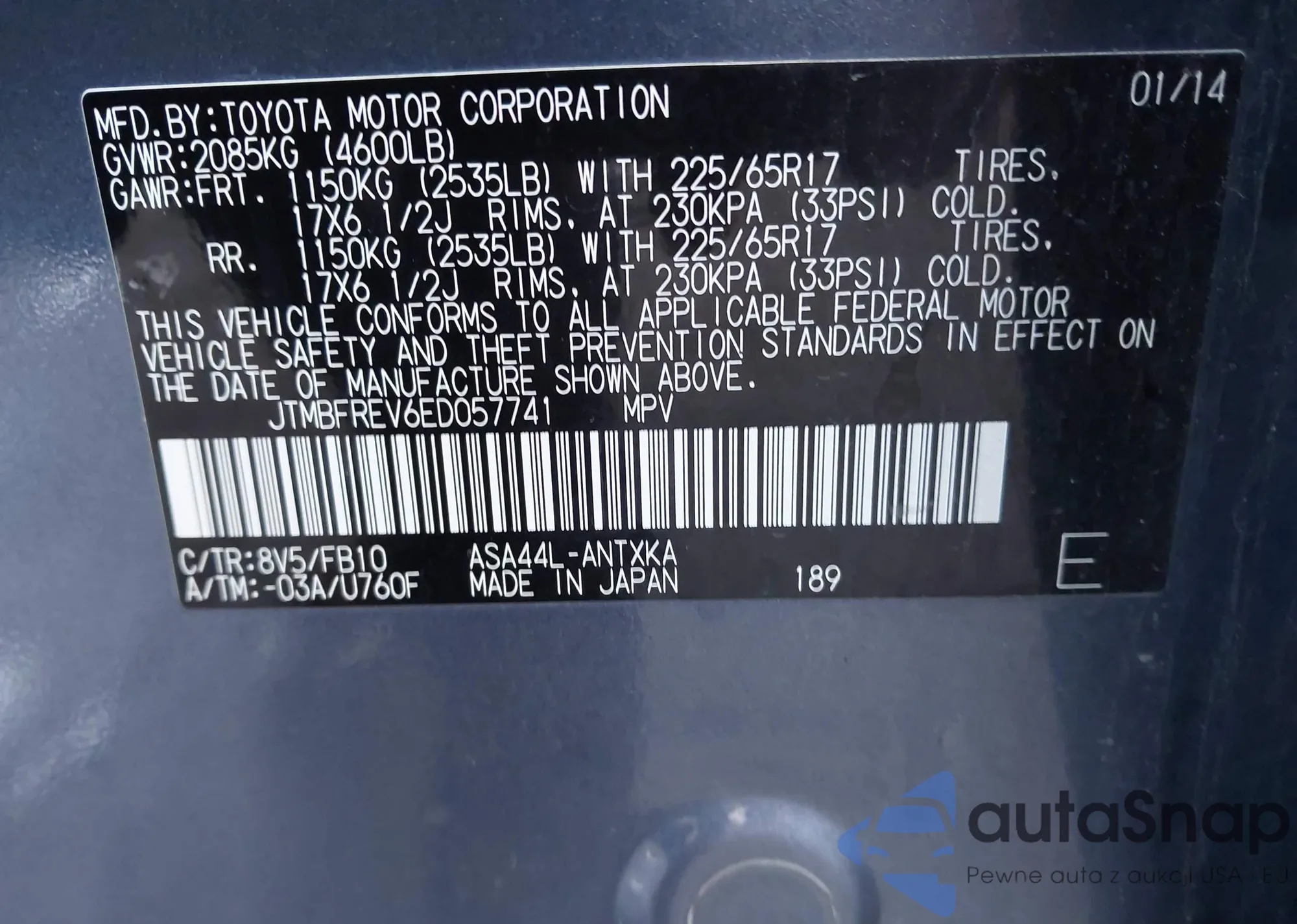 • VIN JTMBFREV6ED057741