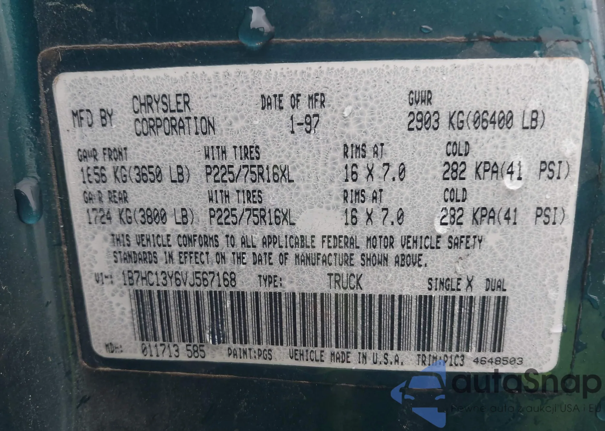 • VIN 1B7HC13Y6VJ567168
