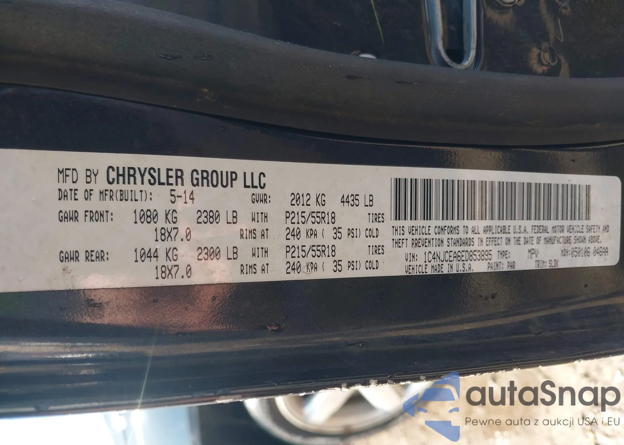 • VIN 1C4NJCEA6ED853895