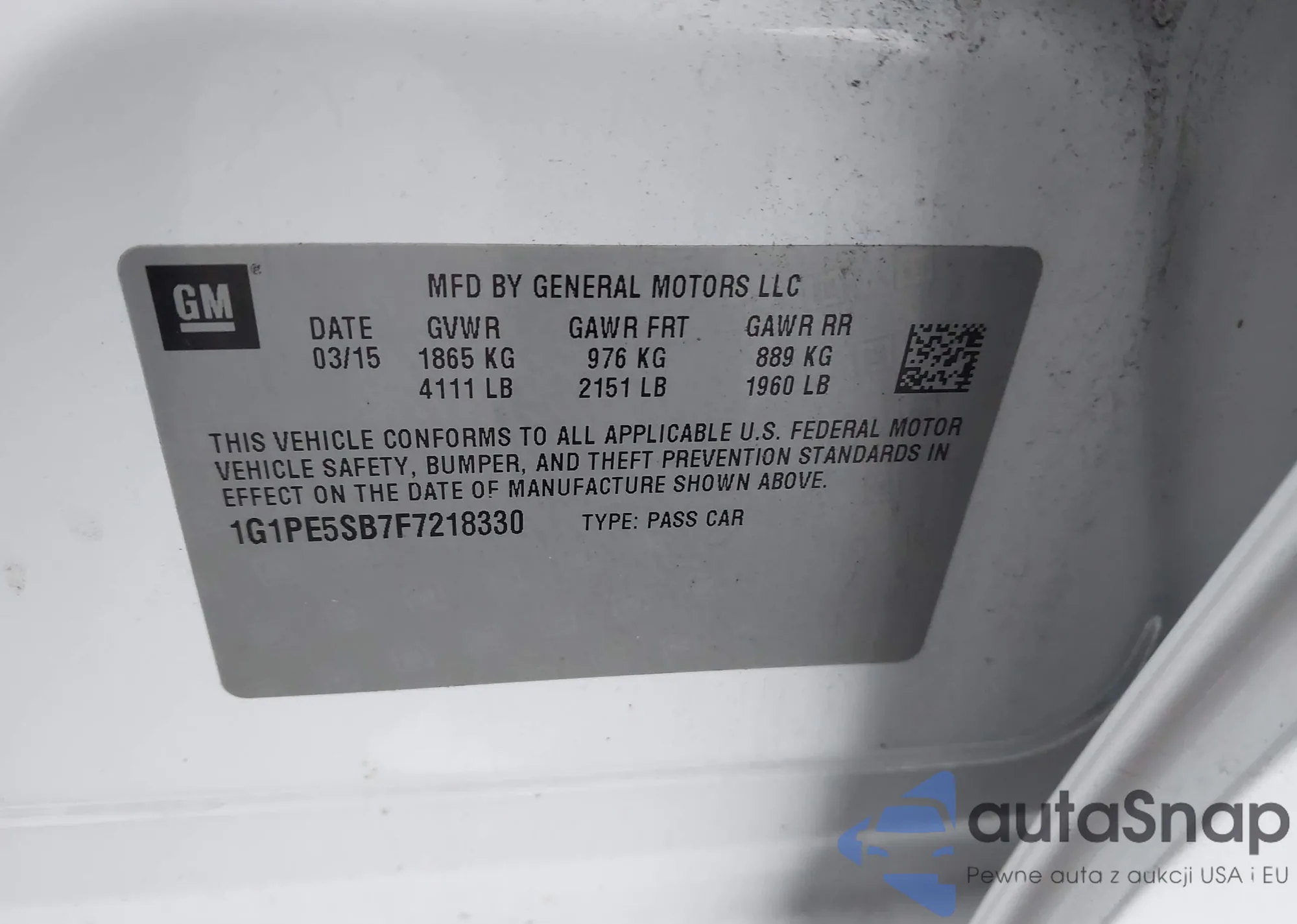 LOT: 44004107 VIN: 1G1PE5SB7F7218330