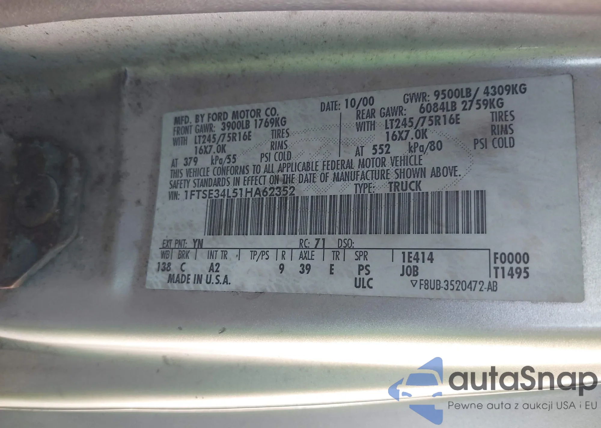 • VIN 1FTSE34L51HA62352